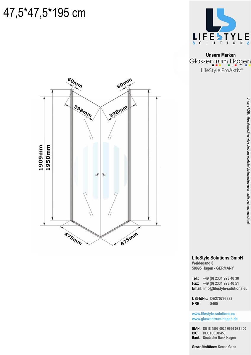 Glaszentrum Hagen 47.5x47.5x195 cm Eck Duschkabine Altbau