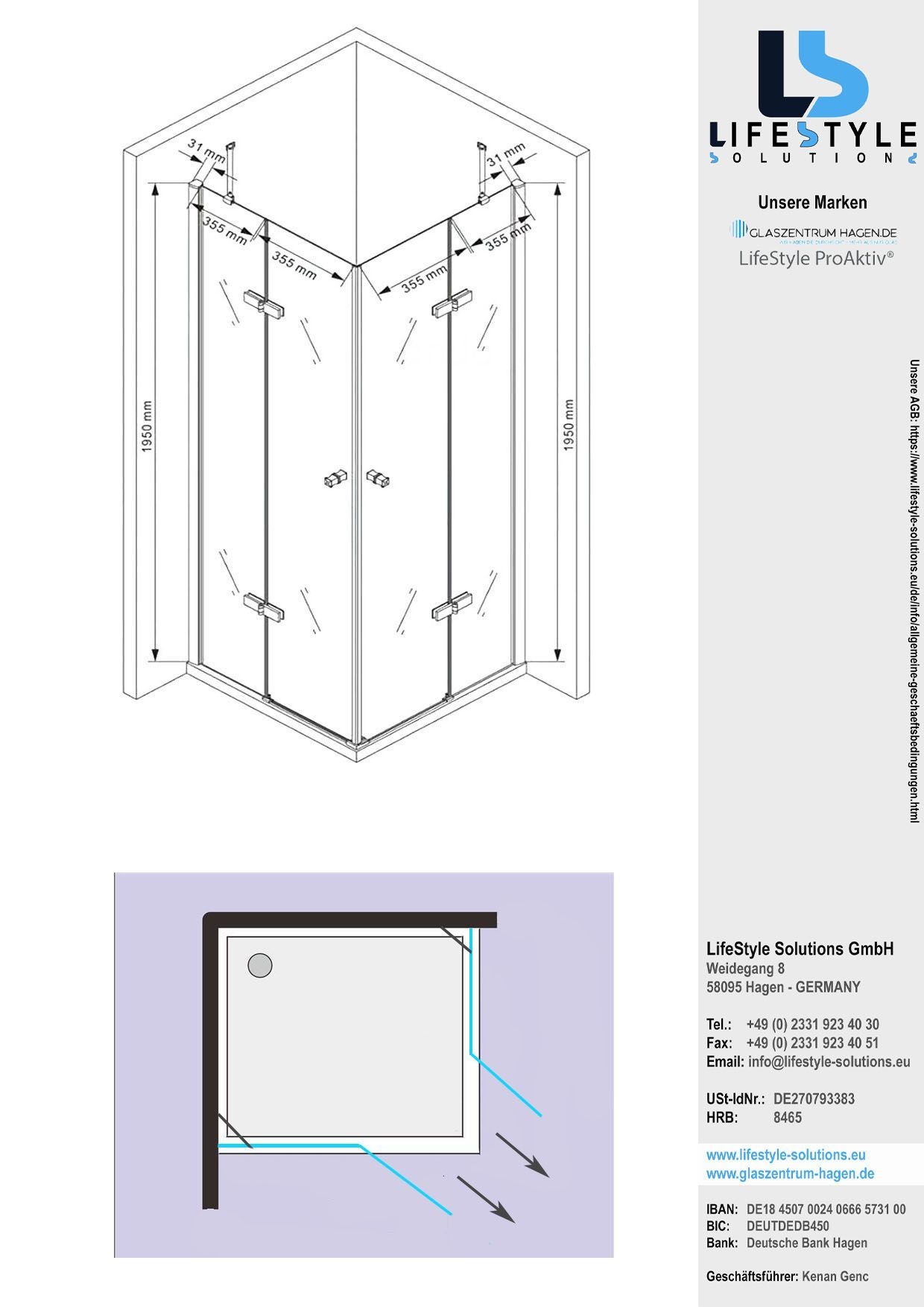 Glaszentrum Hagen - 80x80x195 cm Duschkabine Eckeinstieg Eckduschkabine Dusche