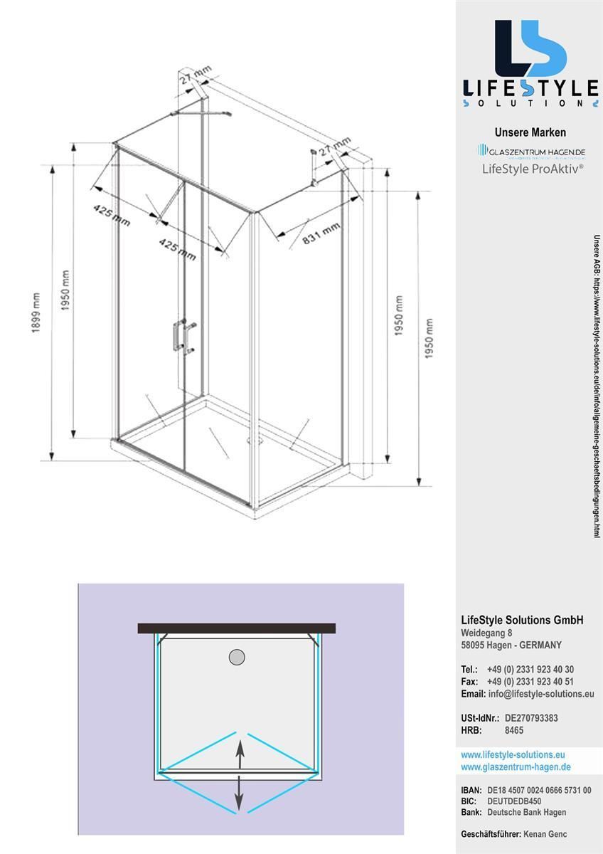 Glaszentrum Hagen - 90x100x90x195 cm - Mille Duschkabine Dusche Duschabtrennung