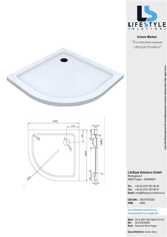 Glaszentrum Hagen Acryla 100x100x5 cm Duschtasse 1/4 R55