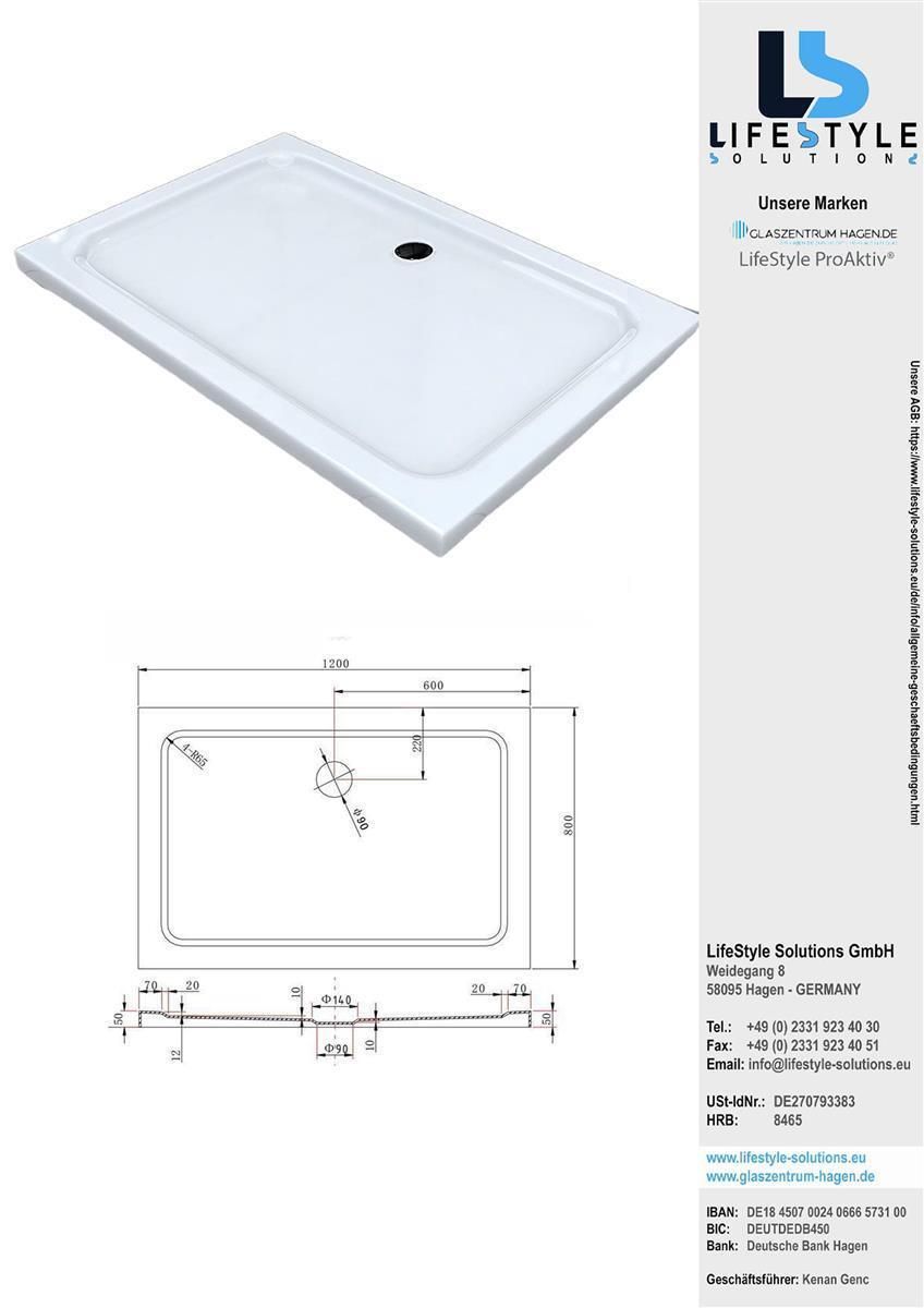 Glaszentrum Hagen Acryla 120x80x5 cm Duschtasse weiß Rechteck