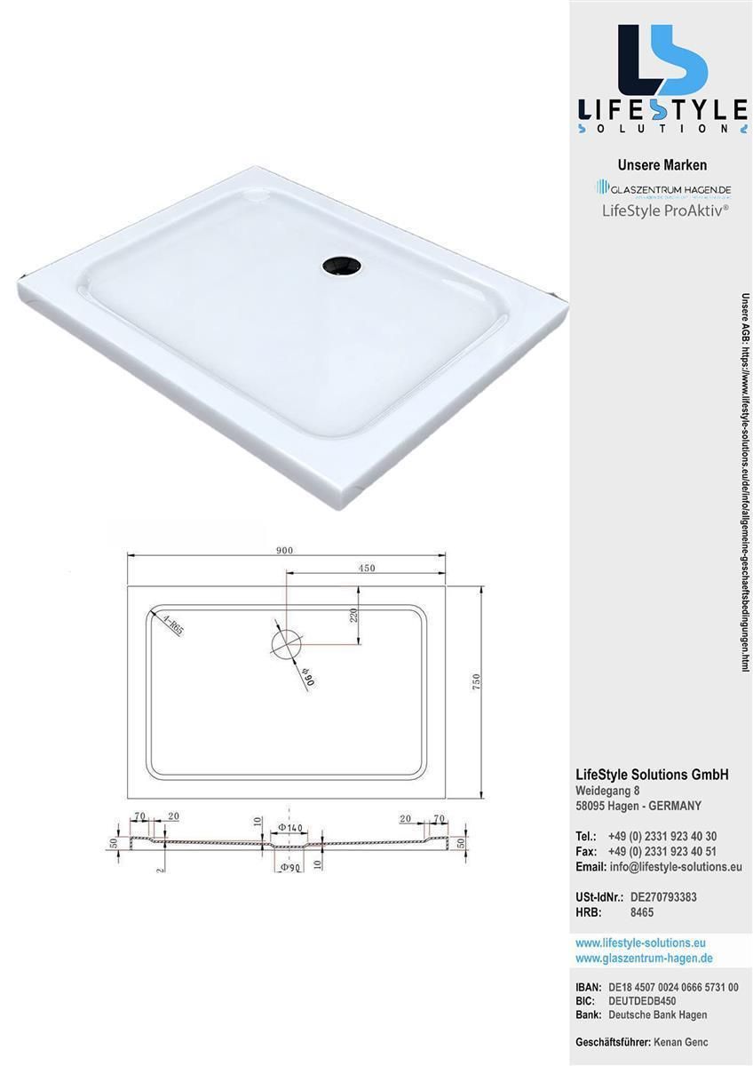 Glaszentrum Hagen Acryla 90x75x5 cm Duschtasse weiß Rechteck