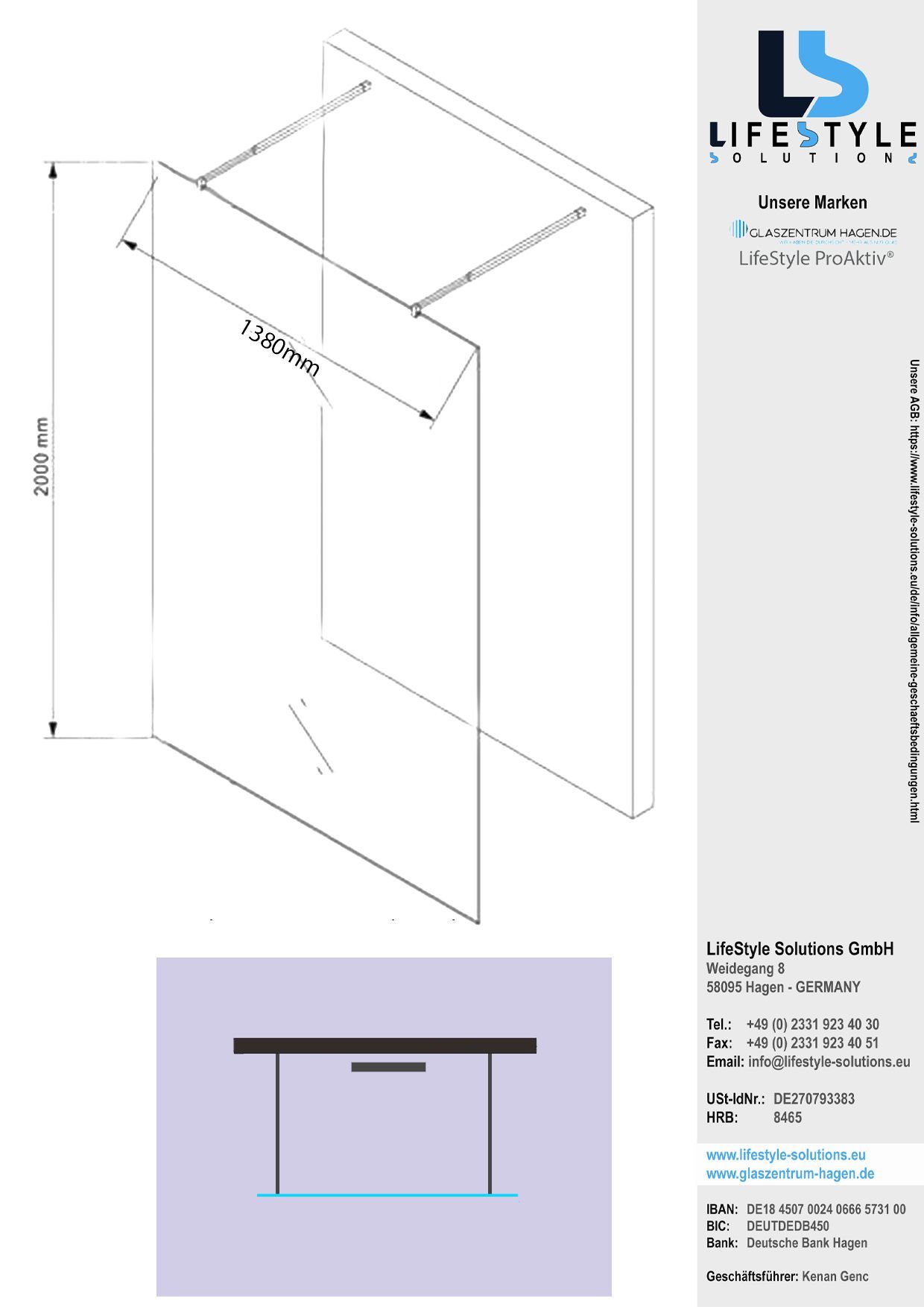 Glaszentrum Hagen Eva 138x200 cm Duschwand Satin-M