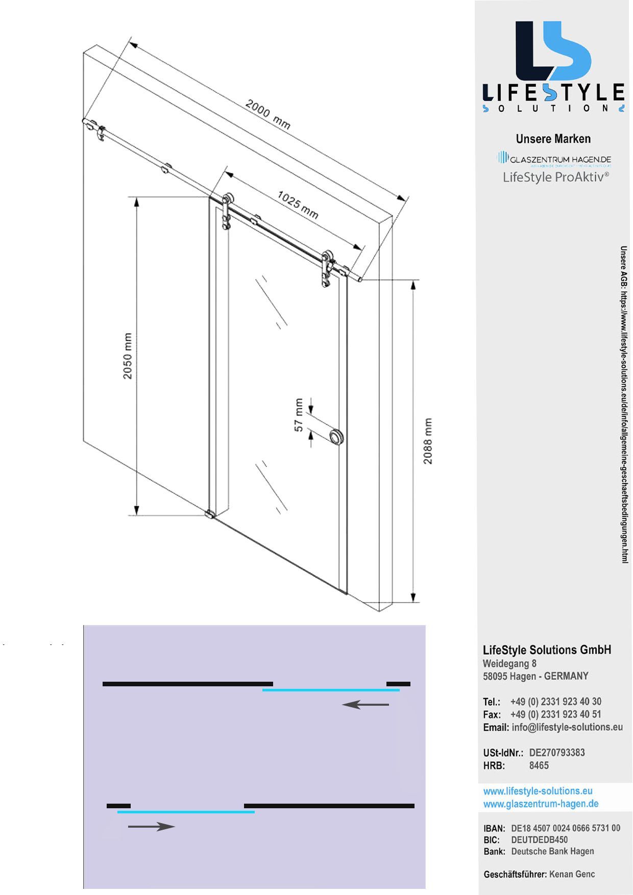Glaszentrum Hagen Glasschiebetür 2050x1025x8 mm Lot, ESG