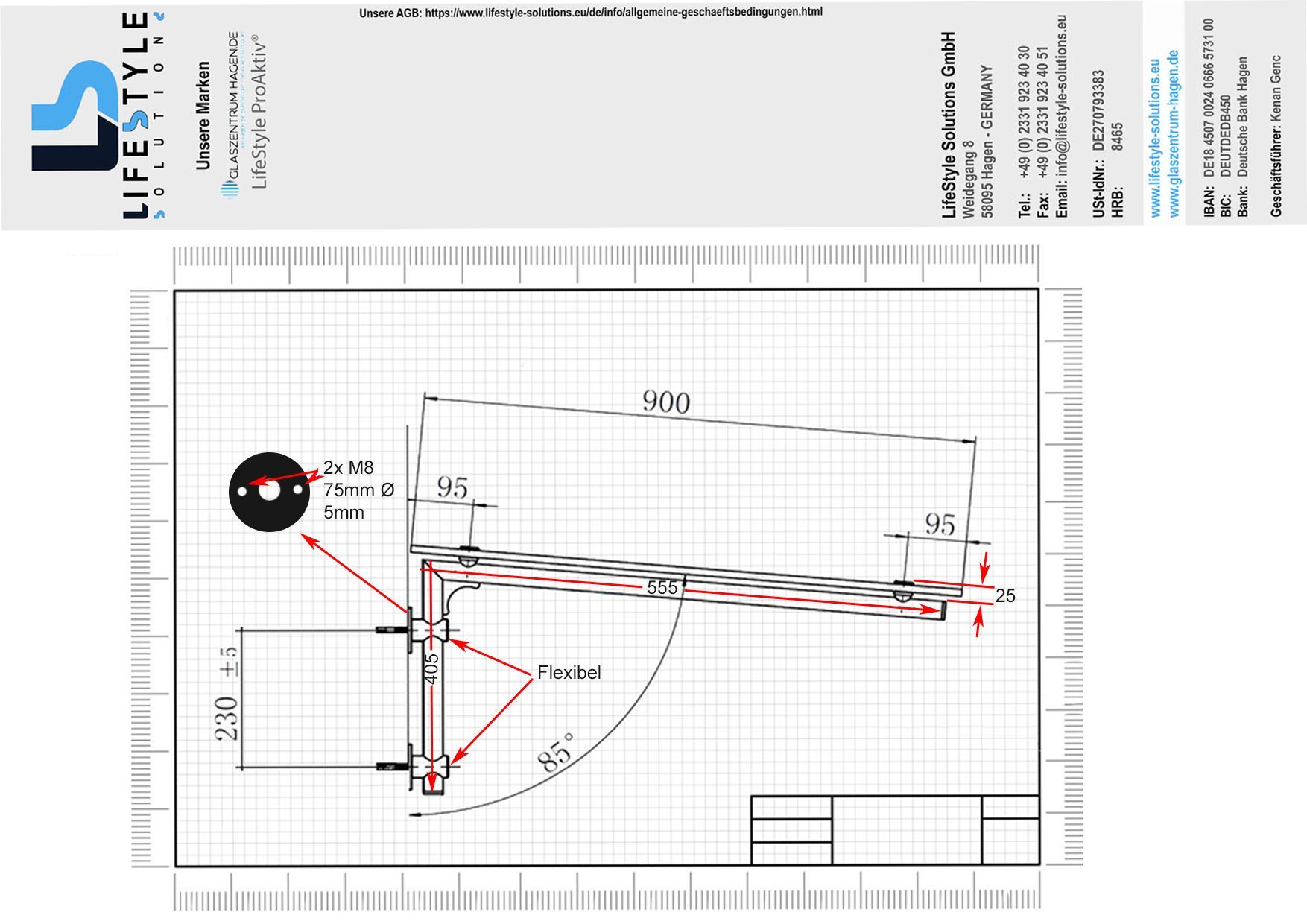 • Glaszentrum Hagen - TYP-S Glasvordach Edelstahl Halterung