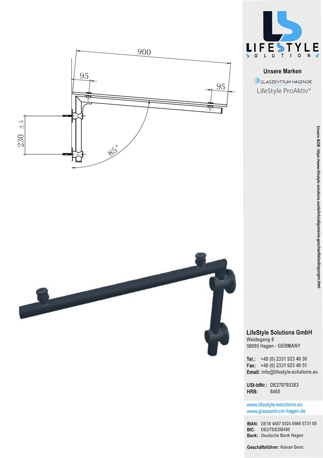Glaszentrum Hagen - TYP-L-RAL7016 Glasvordach Edelstahl Halterung Anthrazit