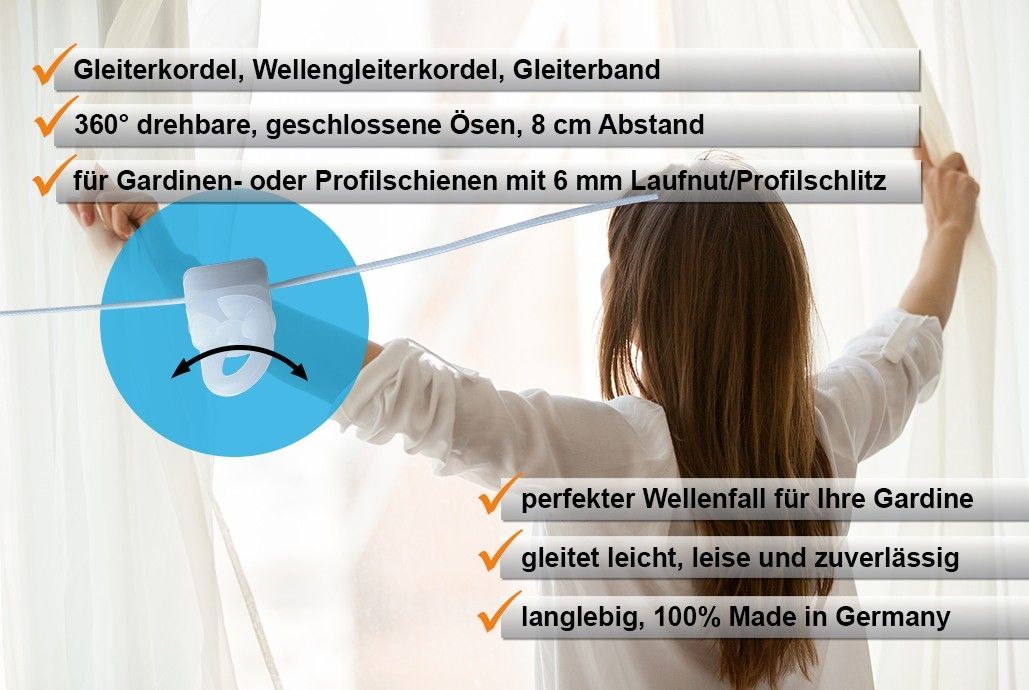 Gleiterkordel, Wellengleitergordel, Gleiterband mit drehbaren (360°) Ösen, Meterware