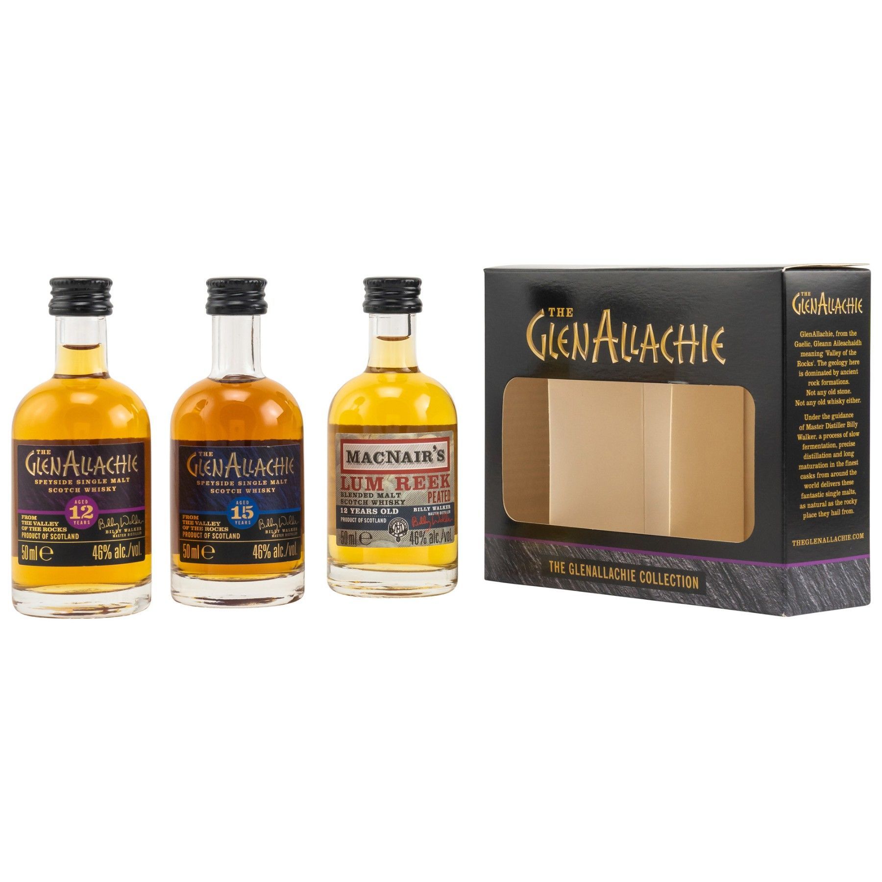 GlenAllachie Miniatur Collection (12J,15J, um Reek 12J) 46% Vol. je 0,05 ltr