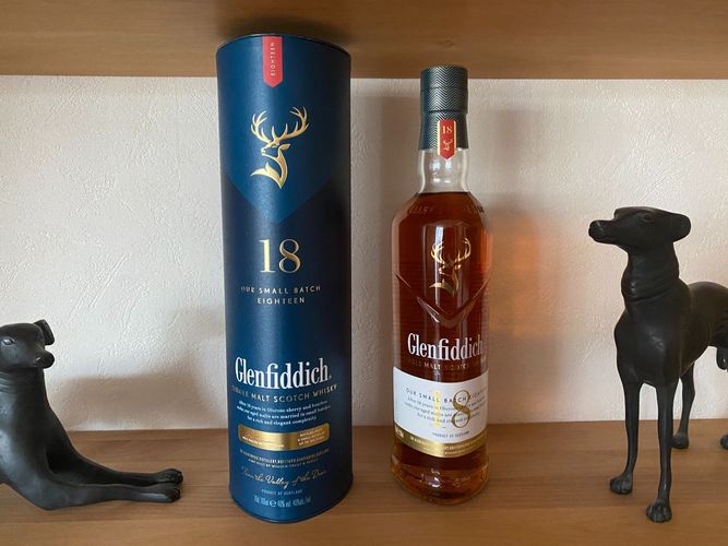 GLENFIDDICH Single Malt Scotch Whisky 18 Jahre - Our small batch 0,7 l - 40 % Vol. Hier wird eine 0,7 l-Flasche Glenfiddich 18 Jahre in einer schönen Geschenkdose angeboten. Der Whisky ist neu und ungeöffnet. Die Abgabe von Spirituosen erfolgt nur an Personen über 18 Jahren. Der Bieter versichert be
