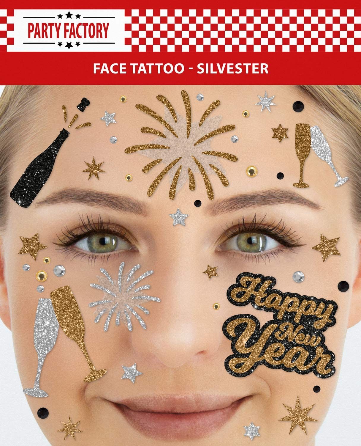 Glitter Face Tattoo Silvester - Glitzer Gesichtstattoo für Neujahr & Party-Look