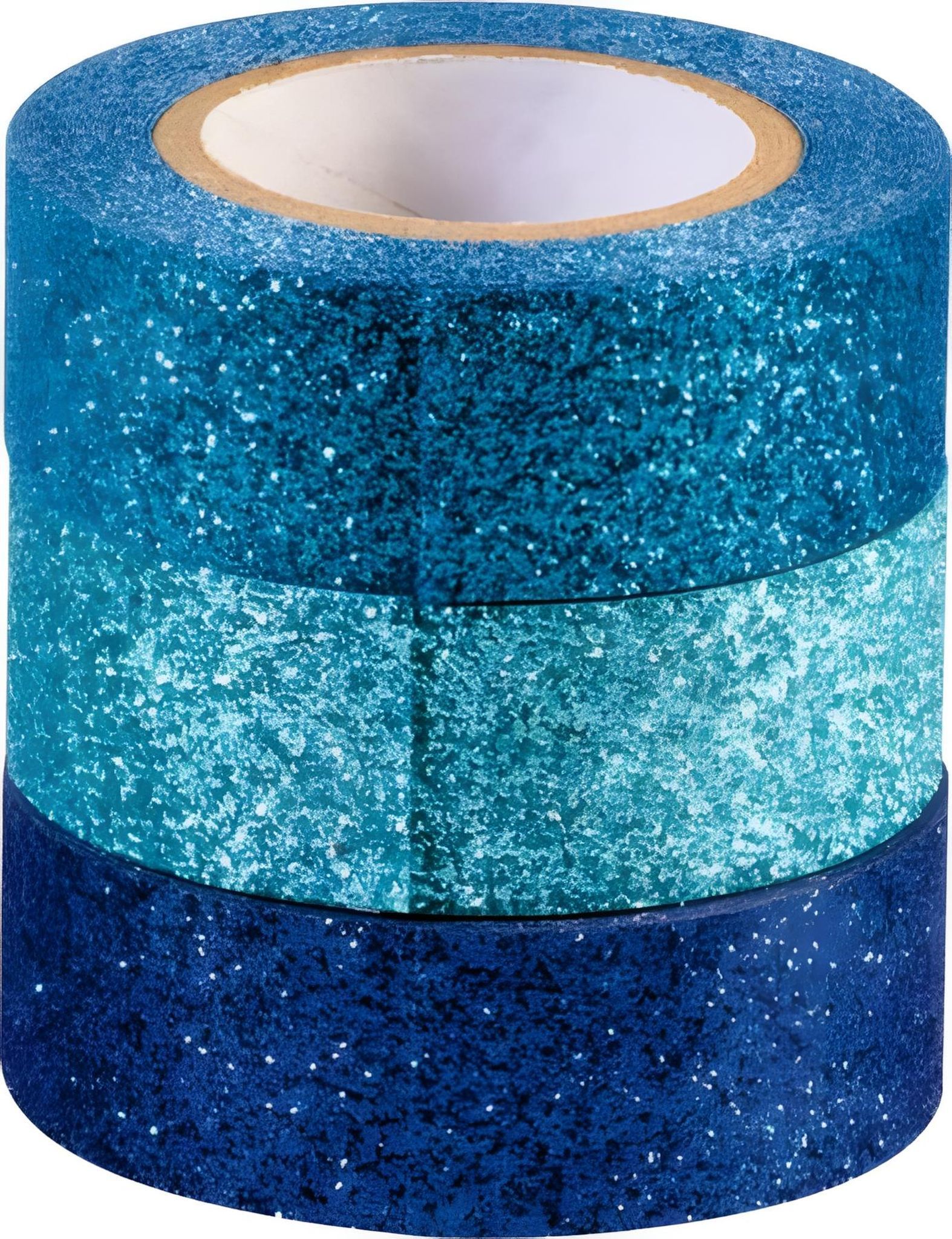 Heyda Glitter Tapes jede Rolle 3 m x 15 mm hellblau mittelblau dunkelblau