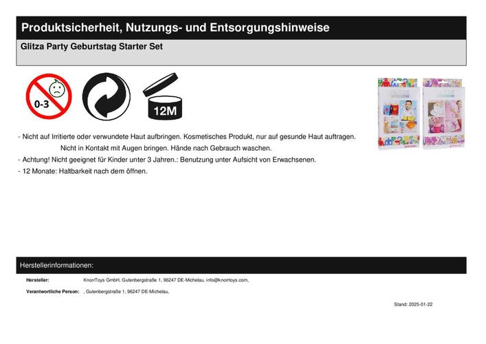 • Achtung! Nicht geeignet für Kinder unter 3 Jahren. Benutzung unter Aufsicht von Erwachsenen.