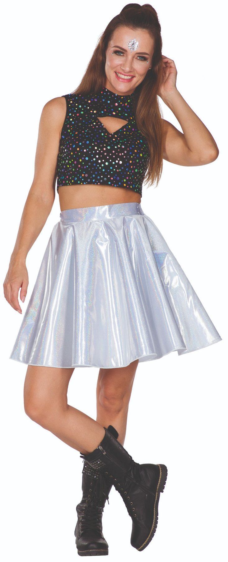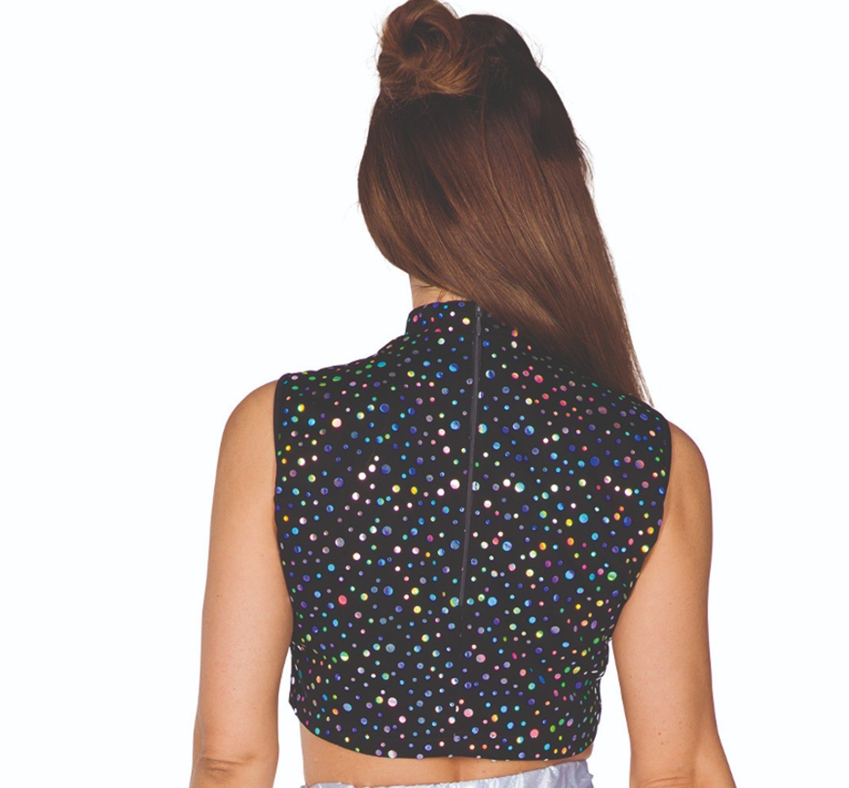 Glitzer Top Space Disco schwarz mit Cut Out silbernen Punkten Karneval Fasching