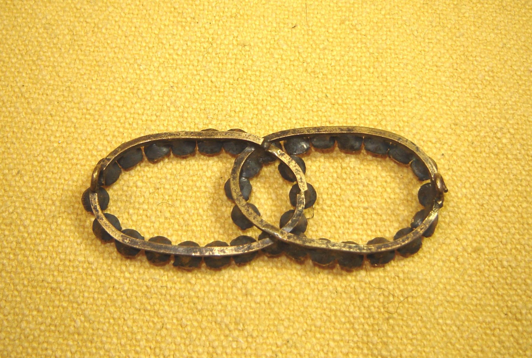 . Vintage Aufnäher aus den 80er Jahren Applikation für Damenhut , Filz , Gürtel , Tasche und andere Stoffe ausgezeichnet verarbeitet , aus deutscher Herstellung üppig besetzt mit vielen Straß Steinen ,einzeln gefasst auf Metall altsilberfarben Breite ca 6,3 cm , Höhe 2,5 cm mit hinten 2 Ösen zum Ann