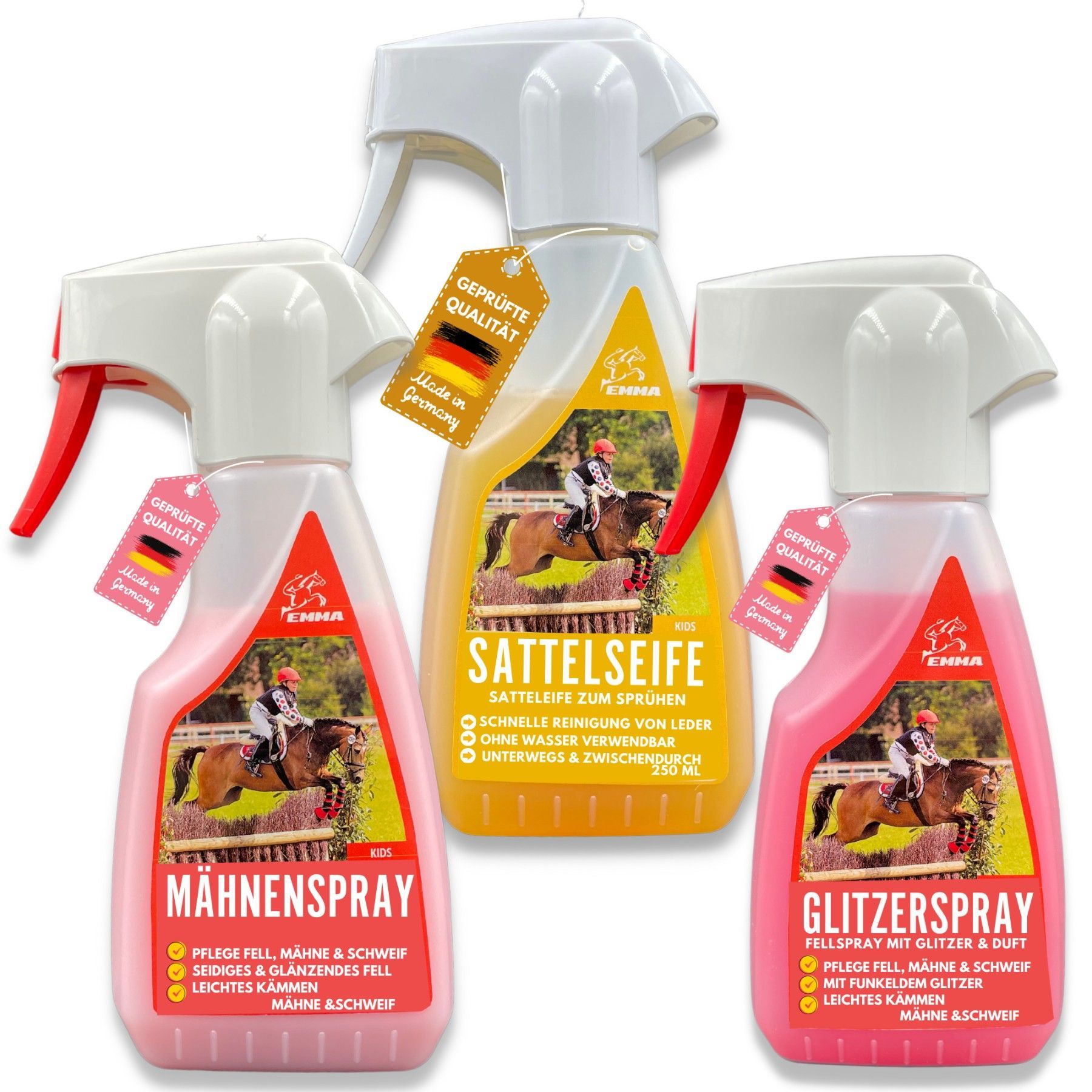 Glitzerspray Pferde + Mähnenspray & Sattelseife - Pferdepflege Set 3 Teilig