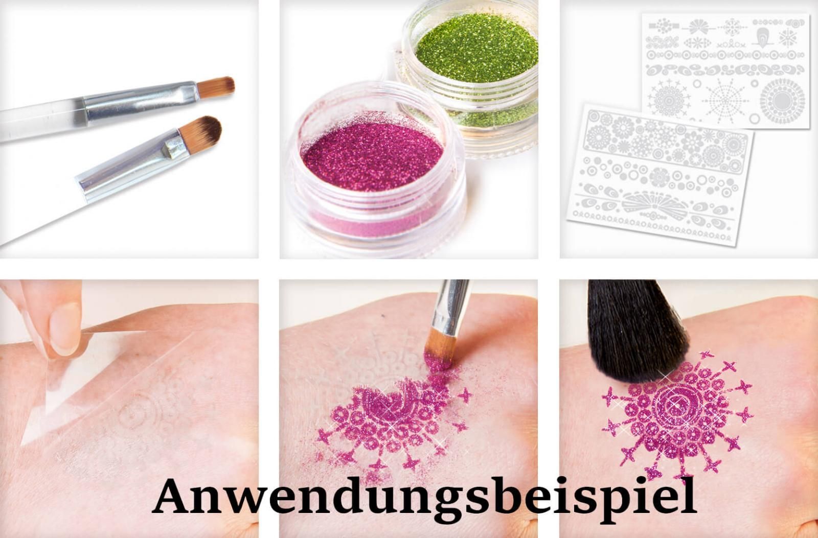 Glitzerzauber Schminktasche Set Tattoos Glitter Nägel Haut Mode knorrtoys Glitza