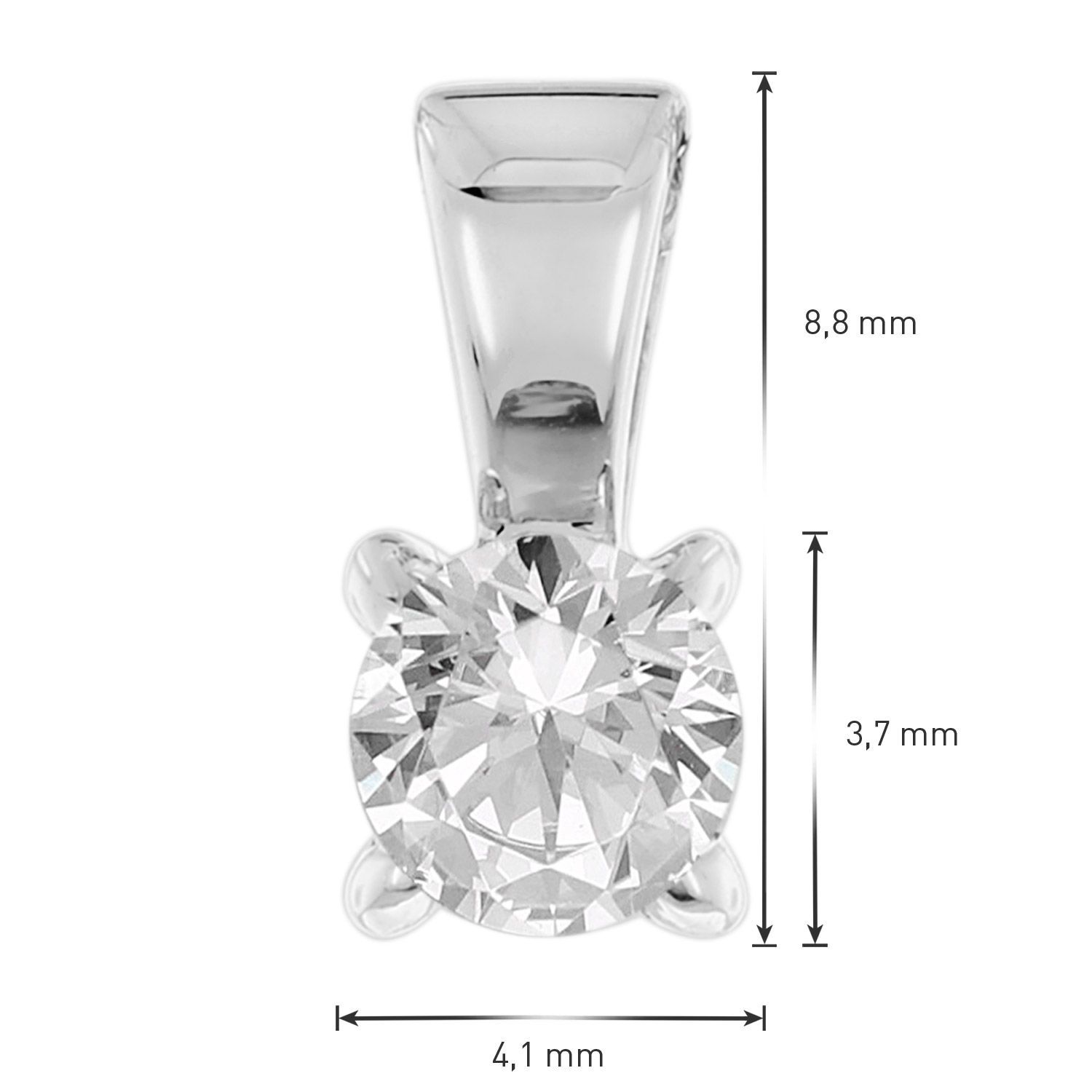 exklusiver Schmuck-Anhänger aus 333er Gelbgold (8 Karat), Lab Grown Diamant mit Brillantschliff, Steingewicht 0,25 ct, Klassifizierung: Farbe TW (Wesselton/Feines Weiß), Reinheit: VSI (sehr kleine Einschlüsse), in einer lichtdurchlässigen 4-Krappen-Fassung, die dem Stein besonderen Glanz verleiht, Größe 8,8 x 4,1 x 3,7 mm (LxBxH), Gewicht 0,5 g, Lieferung mit einem Mikrofaser-Pflegetuch
