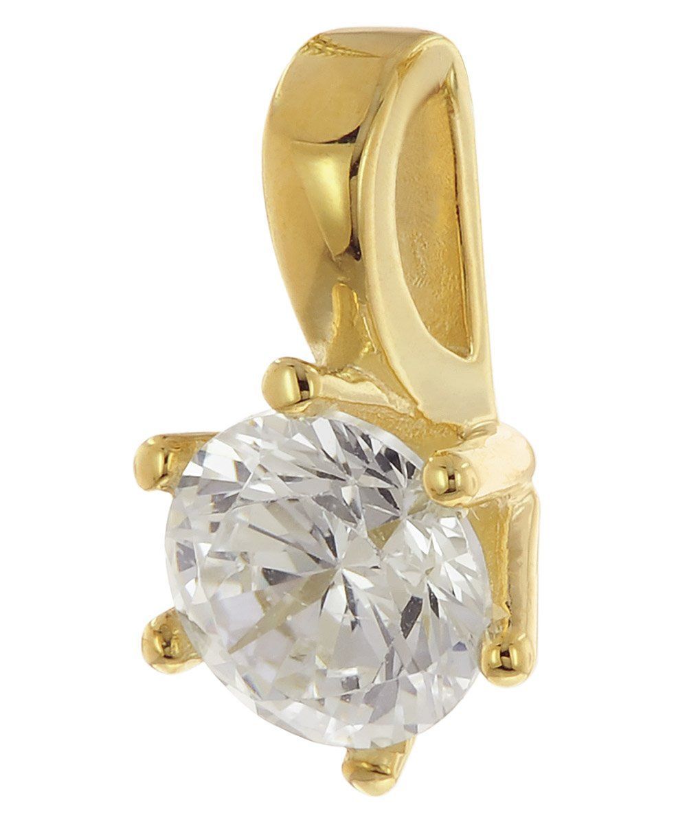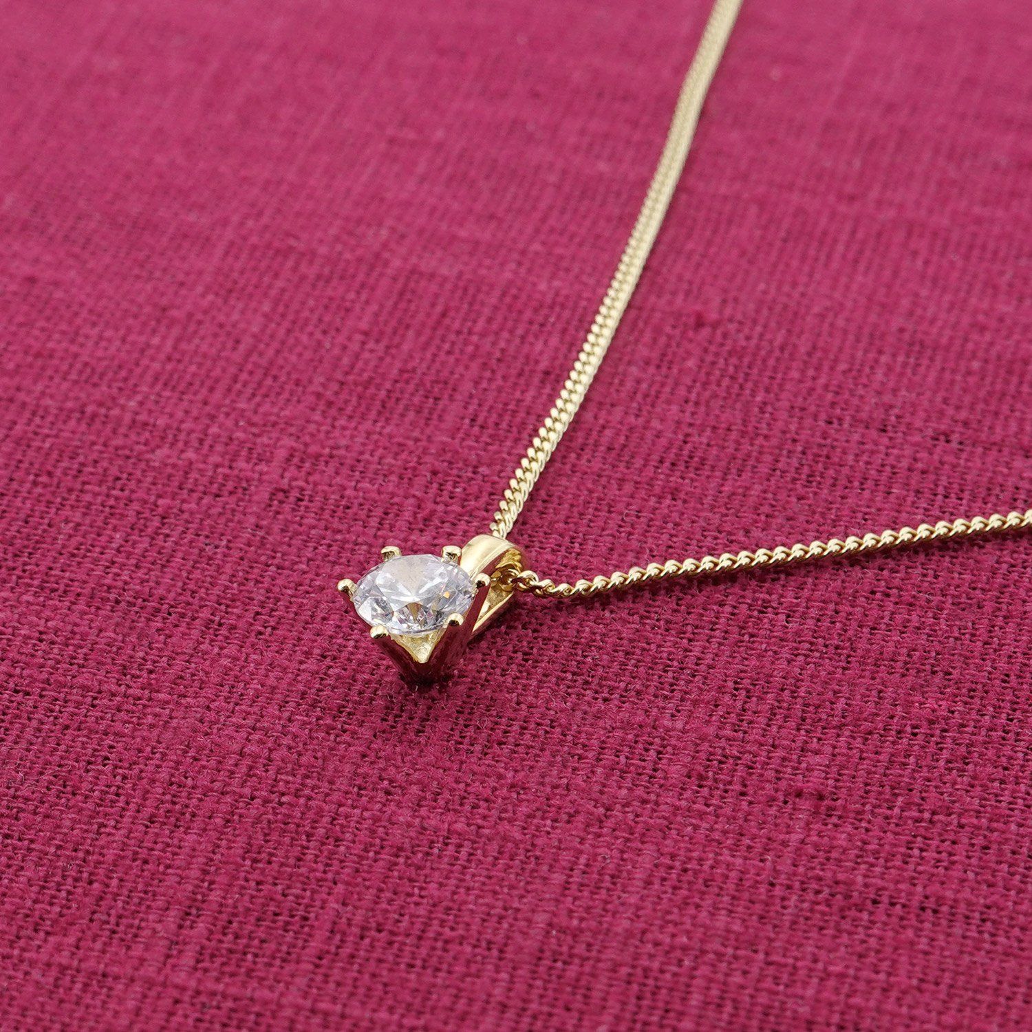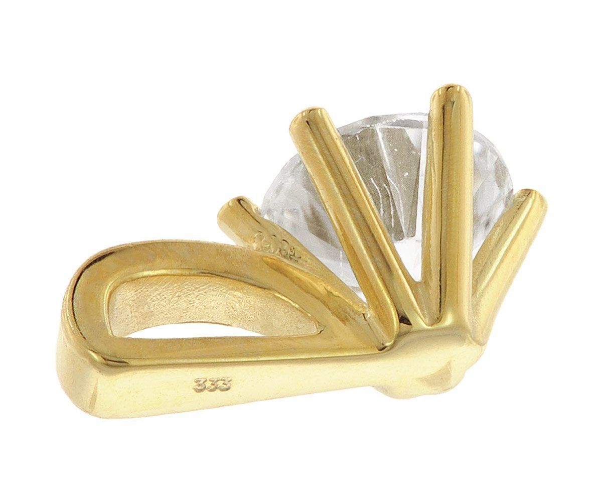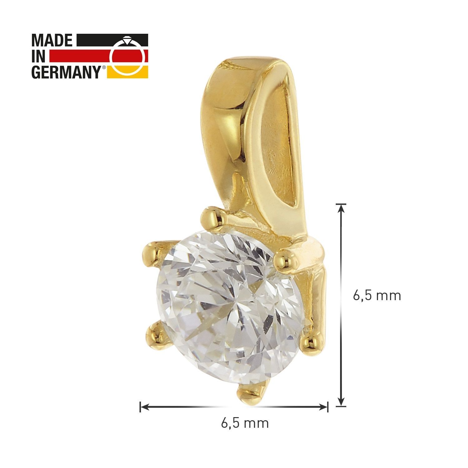 klassischer Halsschmuck für Frauen, Solitär-Anhänger aus 8-karätigem Gold 333, funkelnder synthetischer Zirkonia mit Brillantschliff, in einer lichtdurchlässigen 6-Krappen-Fassung, Durchmesser 6,5 mm, an einer GLIZZ Halskette aus vergoldetem Sterlingsilber 925, stabile geschliffene Flachpanzerkette, Länge 45 cm, Zwischenösen bei 40 und 42 cm, Breite 1,4 mm, bequem bedienbarer Karabiner-Verschluss, Plättchen mit Logo-Gravur