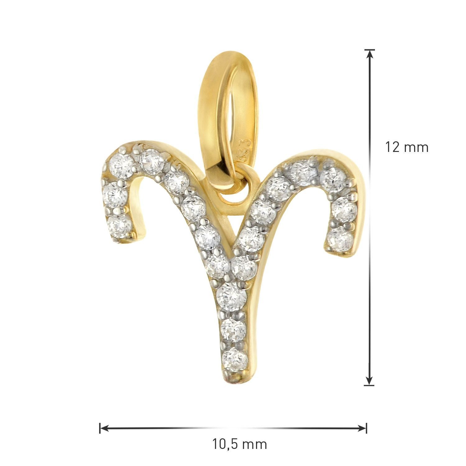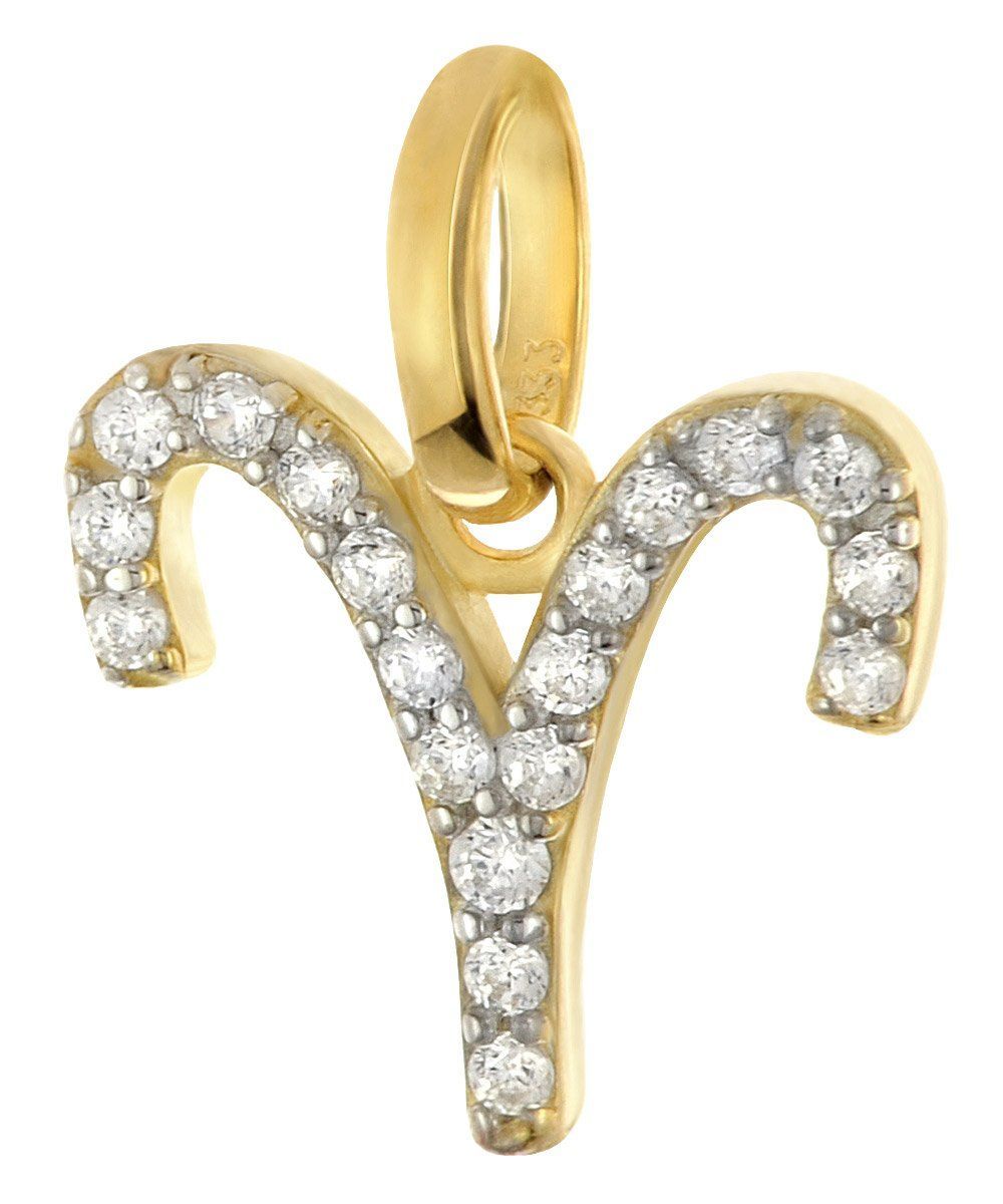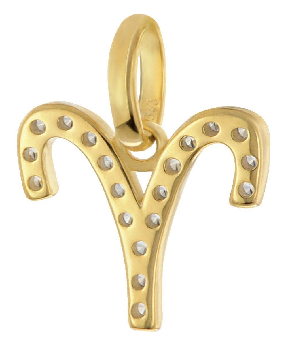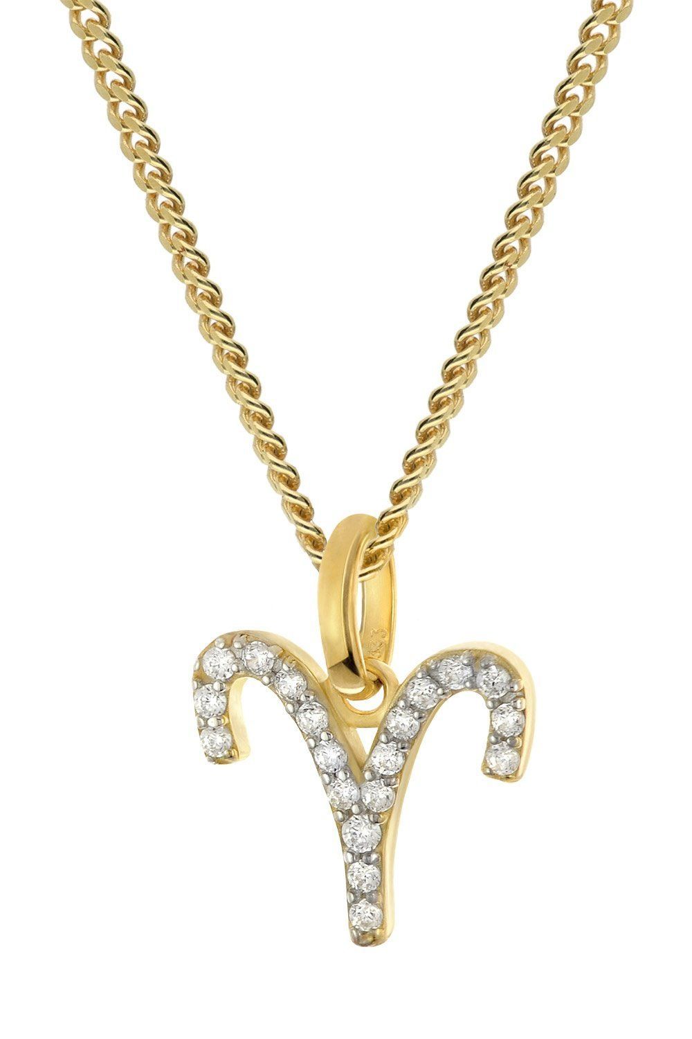 Tierkreiszeichen-Anhänger für Damen und Jugendliche, aus poliertem 8-Karat-Gold 333, Symbol-Sternzeichen Widder (21.03.-20.04.), besetzt mit glitzernden Zirkonias, Größe (mit Schlaufe) 12 x 10,5 mm, an einer GLIZZ Halskette aus vergoldetem Silber 925, feine stabile Flachpanzerkette, Länge 45 cm, Zwischenösen bei 42 und 40 cm, Breite 1,4 mm, bequem bedienbarer Karabiner-Verschluss, Plättchen mit Logo-Gravur, Lieferung mit einem Mikrofaser-Pflegetuch