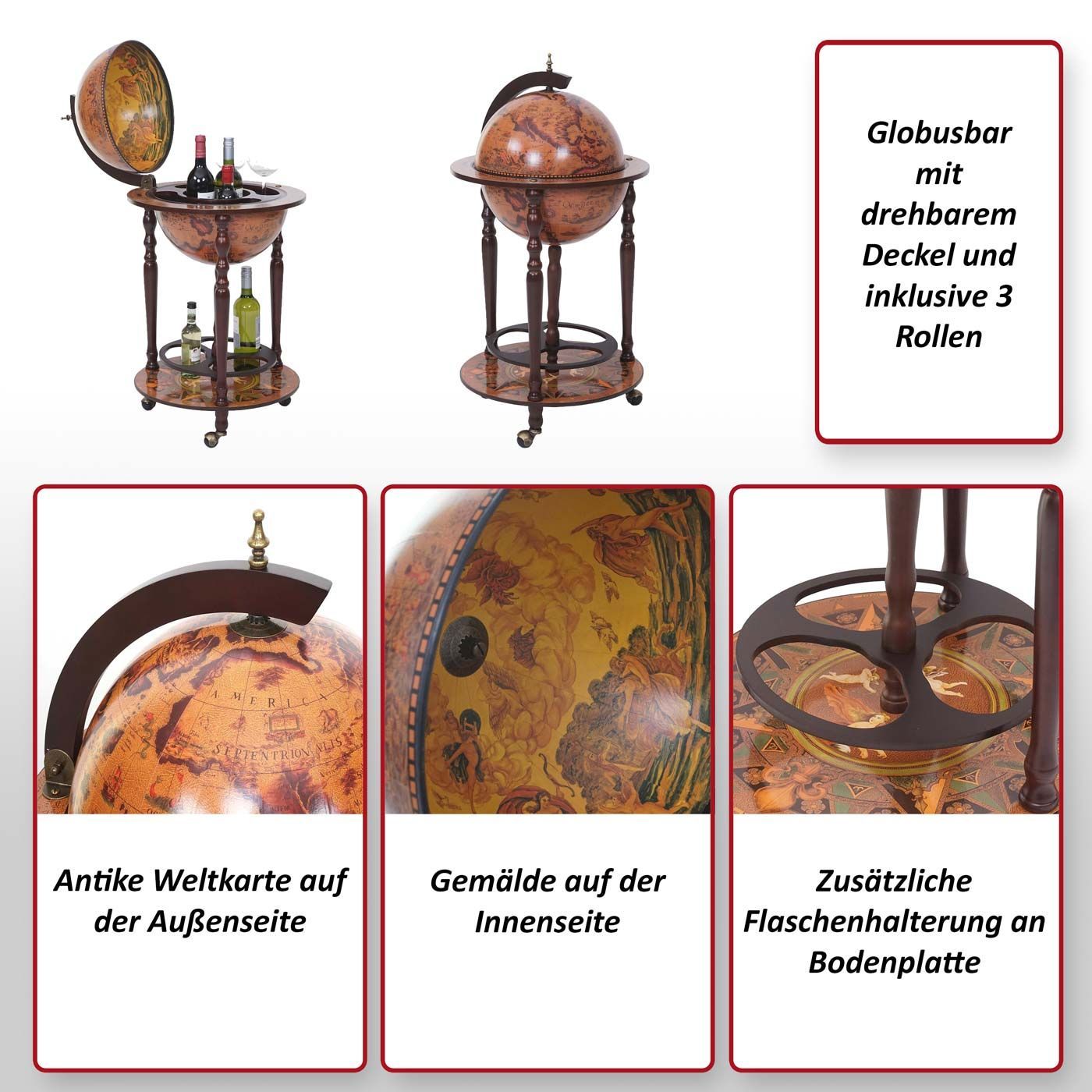 Mendler Globusbar HWC-T874, Minibar Hausbar Weinregal, Weltkugel rollbar Eukalyptusholz