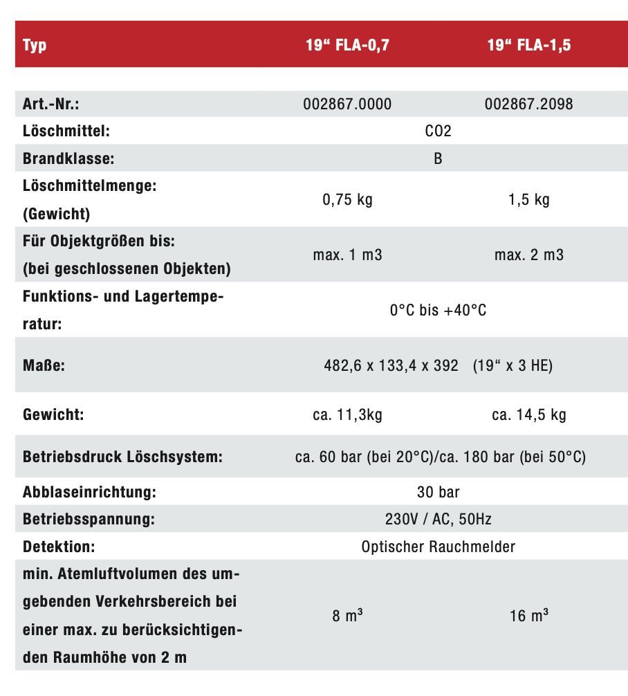 Gloria Gloria 19“ Löschanlage FLA-0,7 Kohlendioxid CO2 Serverschränke Serverraum