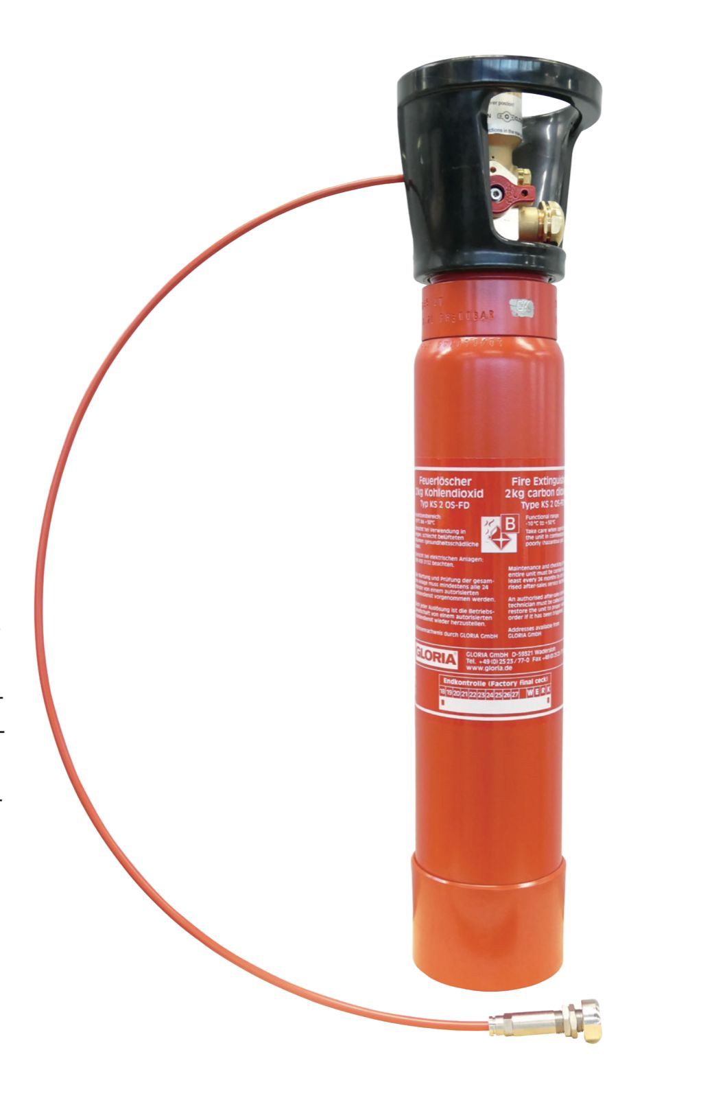 Gloria KS 5 OS-FD Automatik Löschanlage Objektschutz Kohlendioxid CO2 Serverraum Funktionsweise Die autarken und energieunabhängigen KS 5 OS-FD Löschanlagen bestehen aus einem CO 2 -Löscher und der „SensorFlexLine“ Detektions-Schlauchleitung. Bei Anstieg der Temperatur über den Berstdruck hinaus pla