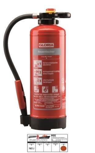 Gloria P6PRO - Auflade-Pulver Feuerlöscher (ABC) mit Wandhalter; einsetzbar an ele
