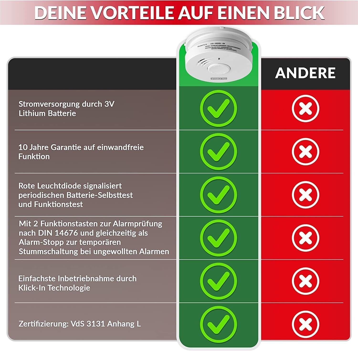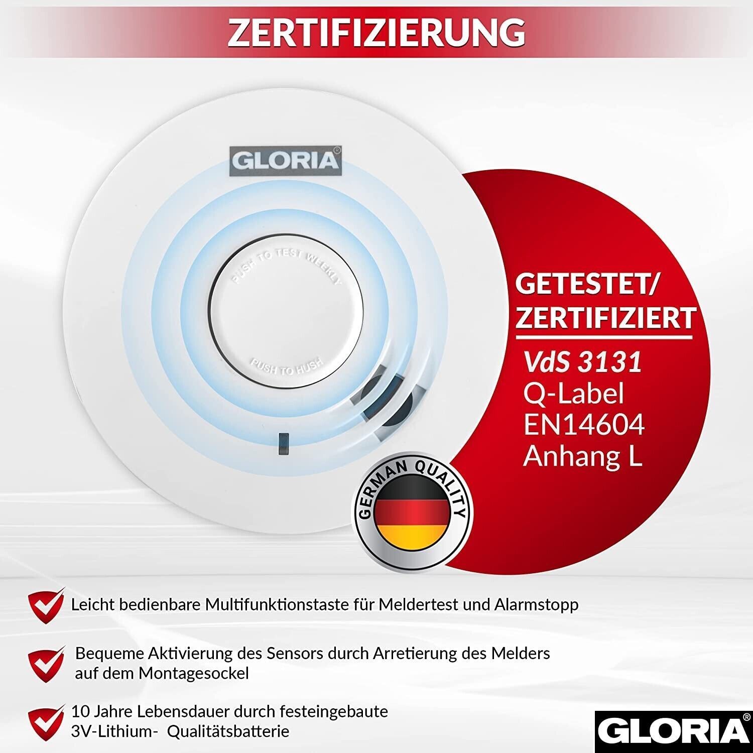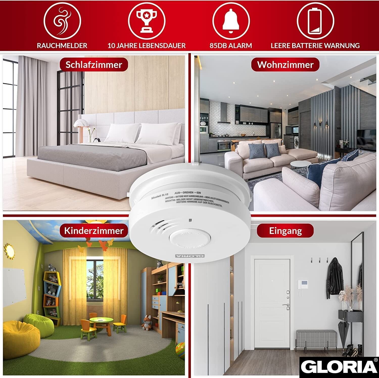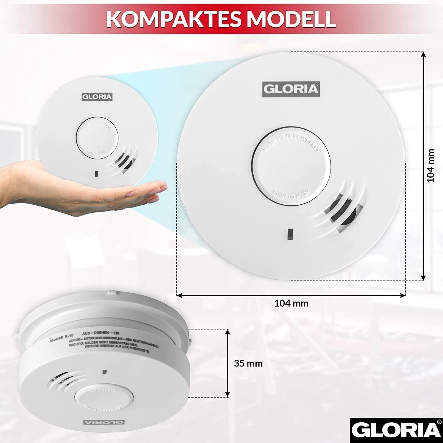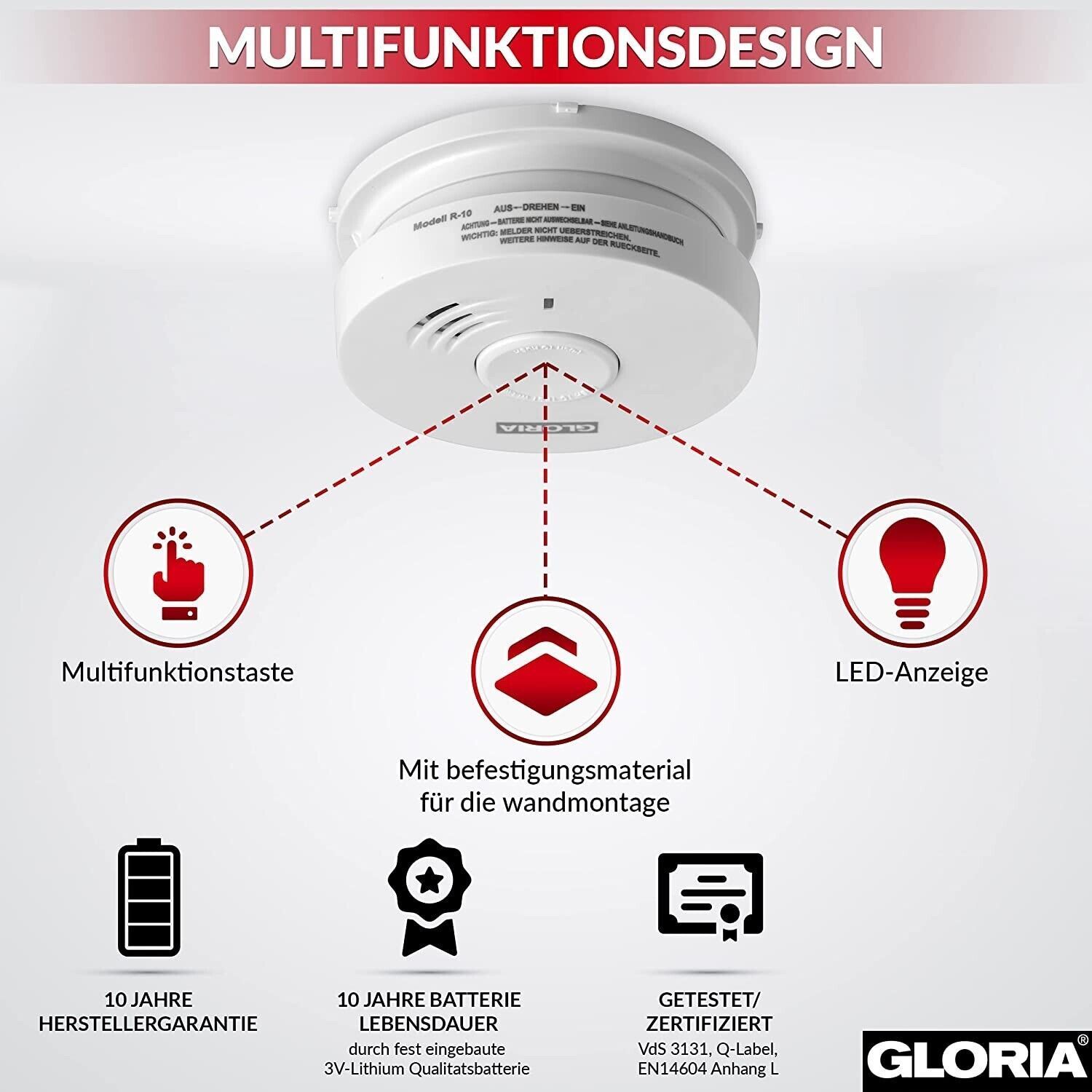 GLORIA GLORIA R-10 Rauchwarnmelder mit 10- Jahres Lithium Batterie, Rauchmelder