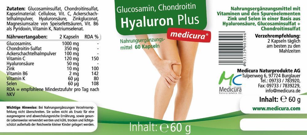 Medicura Glucosamin Chondroitin Hyaluronsäure plus - 60 Kapseln