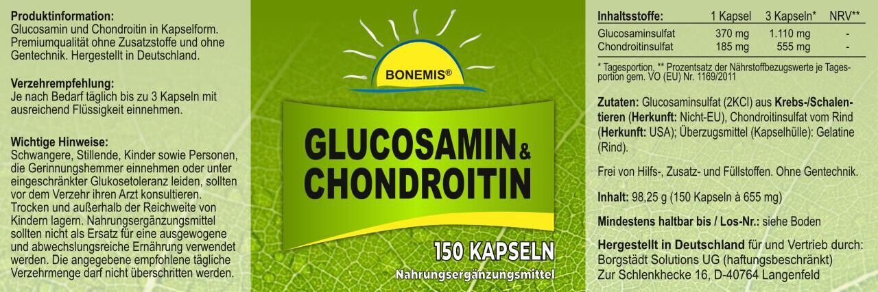 Glucosamin + Chondroitin Kapseln (2:1), ohne Zusatzstoffe, 150 Kapseln, Bonemis®