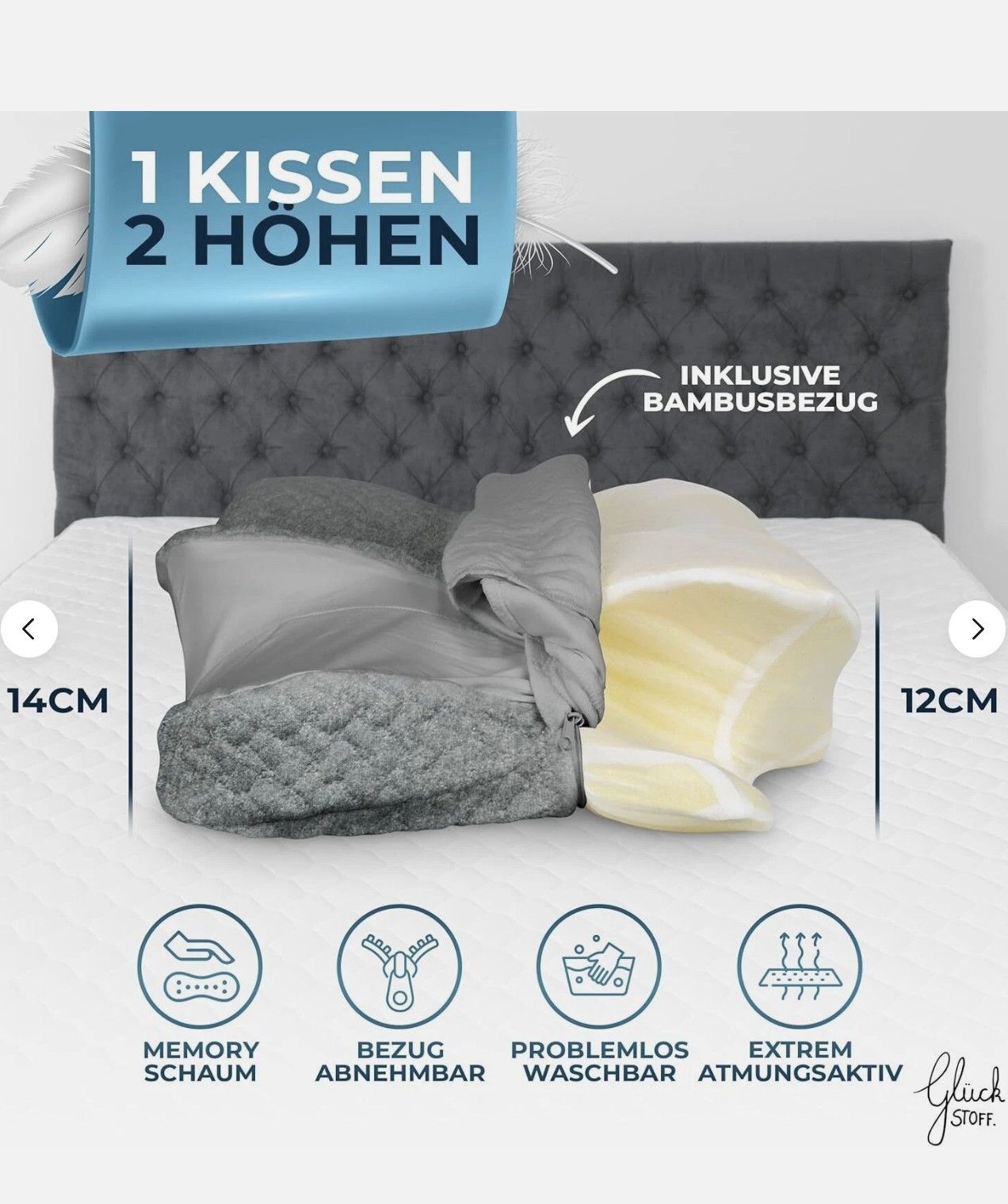 Glückstoff® Orthopädisches Kissen Kopfkissen Nackenschmerzen Aus Memory Foam