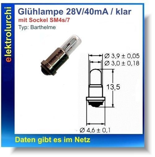Barthelme Glühlampe 28V 40mA 13,5x4,6mm Sockel SM4s/7 Glühbirne Lampe Birne, Barthelme, 3St.