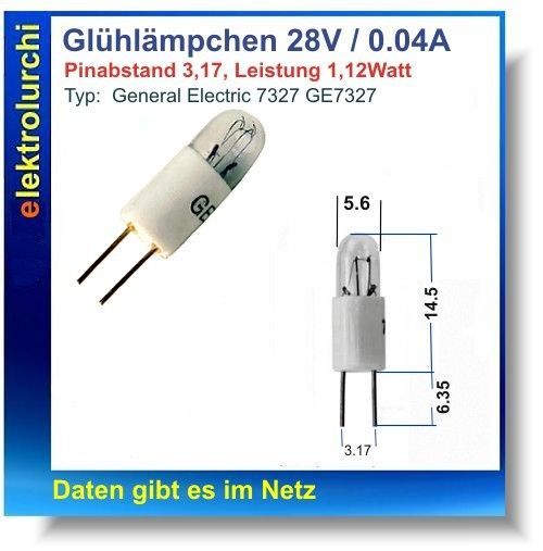 Barthelme Glühlampe 28V 40mA 14,5x 5,6mm General Electric GE7327 Glühlämpchen, T1-3/4, 2St.