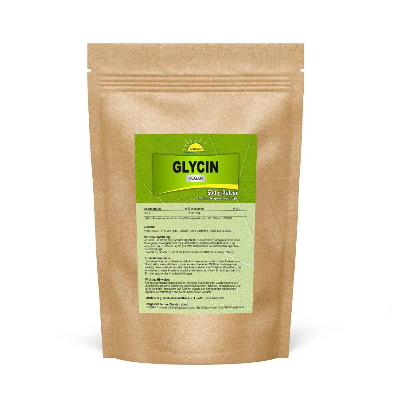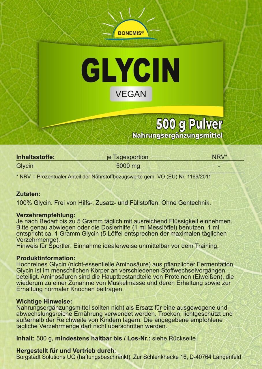 Glycin, vegan, Pharmaqualität, ohne Zusatzstoffe, 500 g im Beutel, Bonemis®