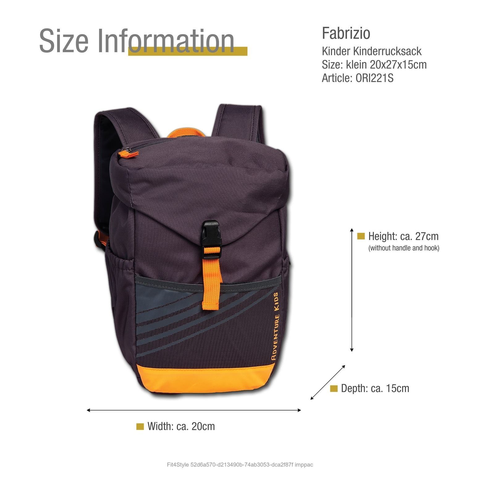 Hier ist ein wunderschöner Fabrizio Marken-Rucksack mit der Bestellnummer ORI221S für Kinder in der Farbe grau. Dieser trendige Rucksack aus der Kids Kollektion mit den Maßen 20cm x 27cm x 15cm ist aus recyceltem Polyester und wird mit Reißverschluss verschlossen.