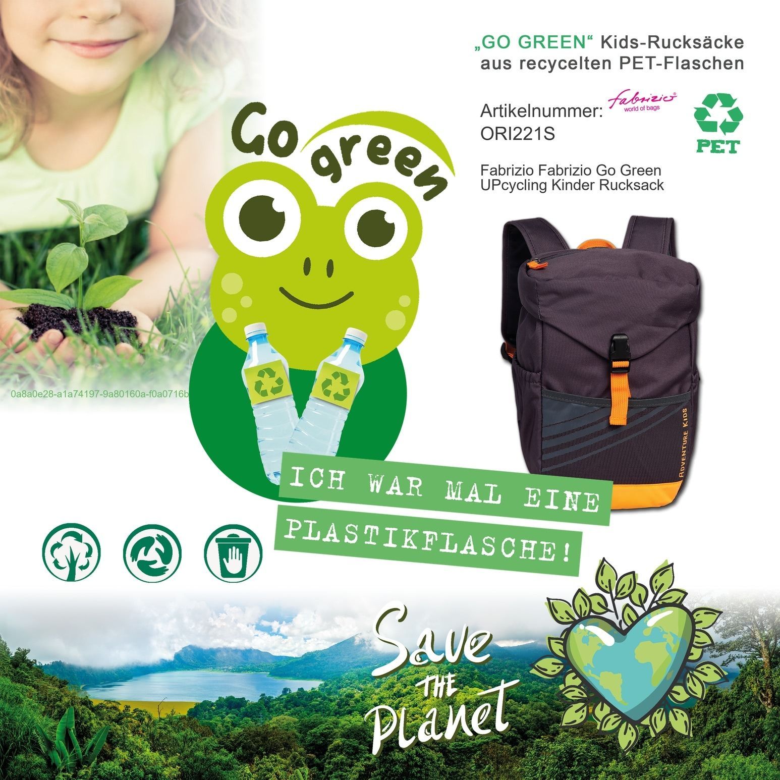 Go Green Fabrizio Kinder Rucksack 20x27x15 grau Freizeitrucksack, ORI221S