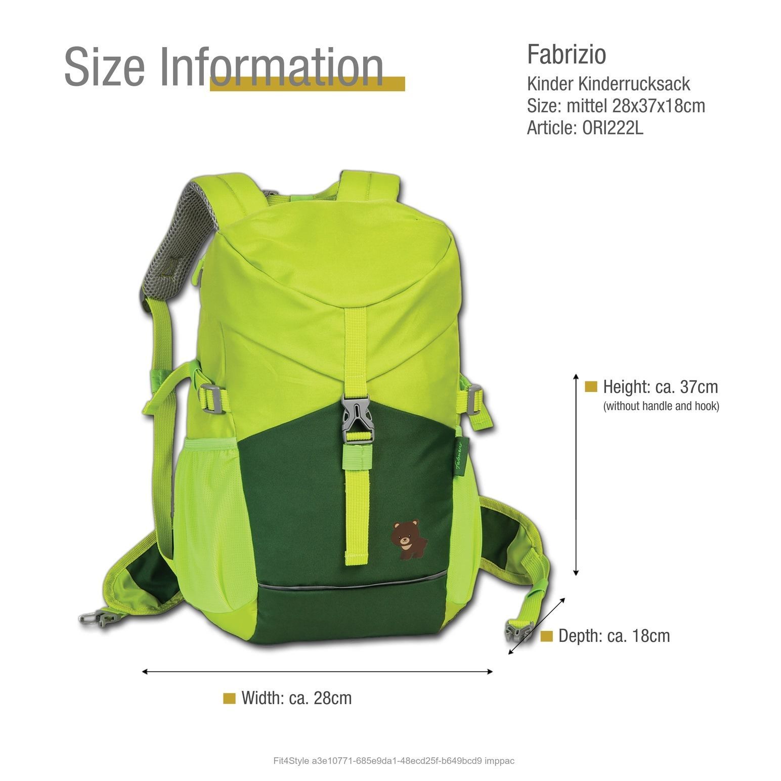 Go Green Fabrizio Kinder Rucksack 37x28x18 lime Bär Freizeitrucksack, ORI222L