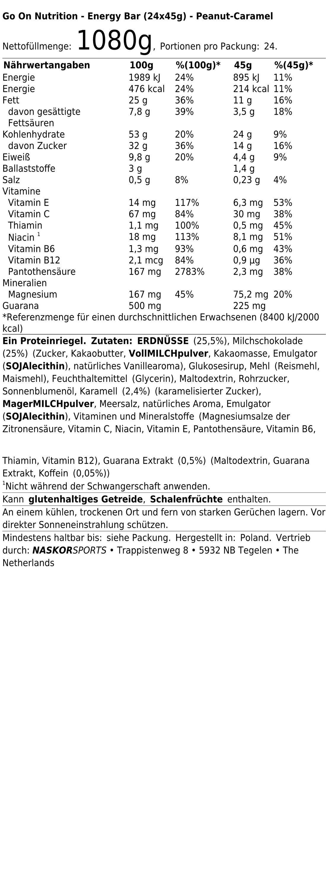 Go On Nutrition Energy Bar (24x45g) Peanut-Caramel