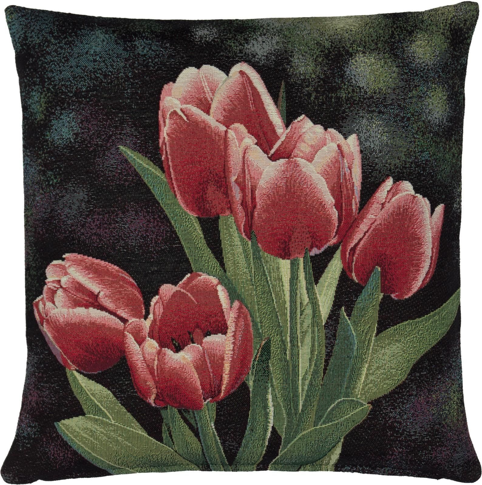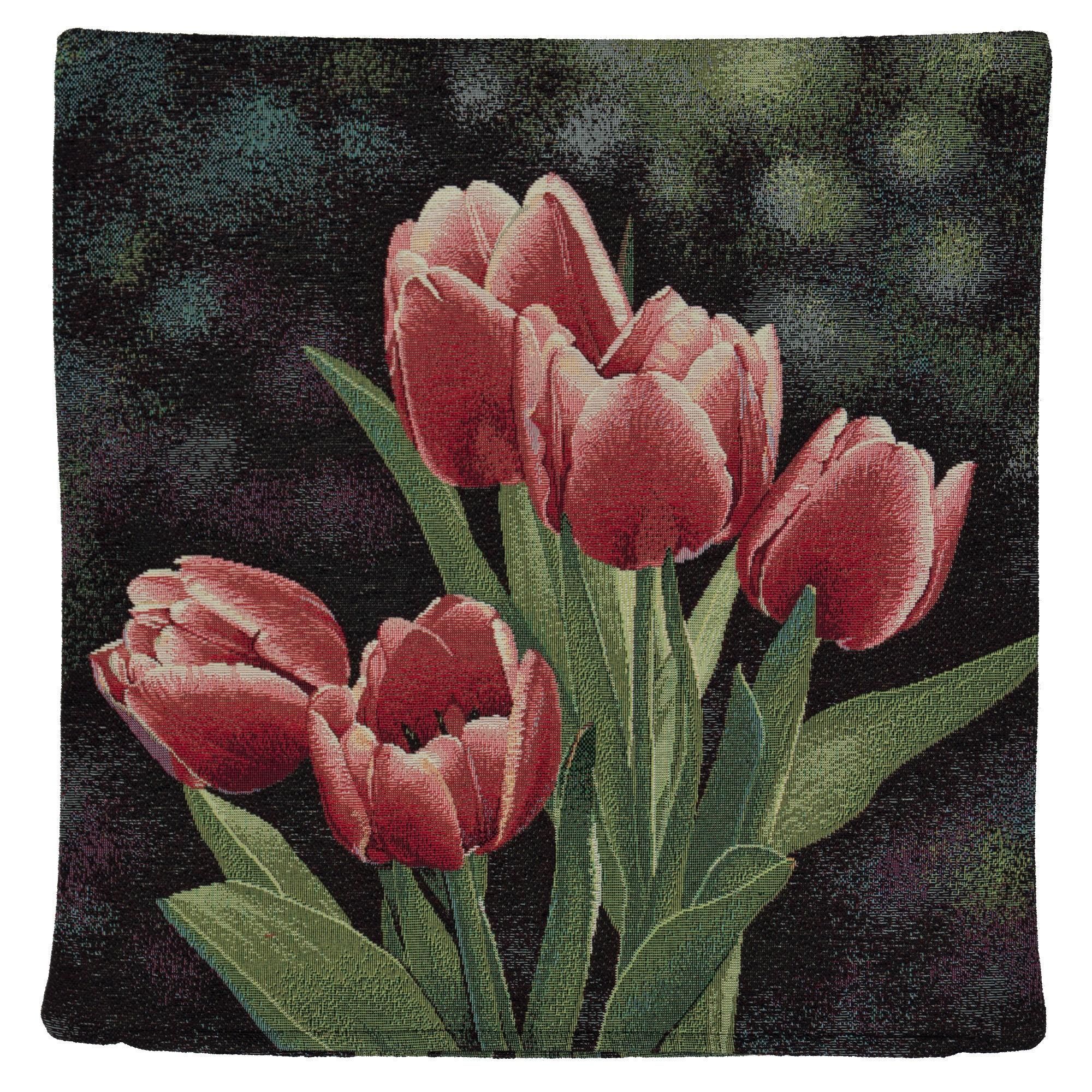 Gobelin Kissenbezug Frühling 45x45 Kissenbezug Kissen Tulpen Rot Made in Germany