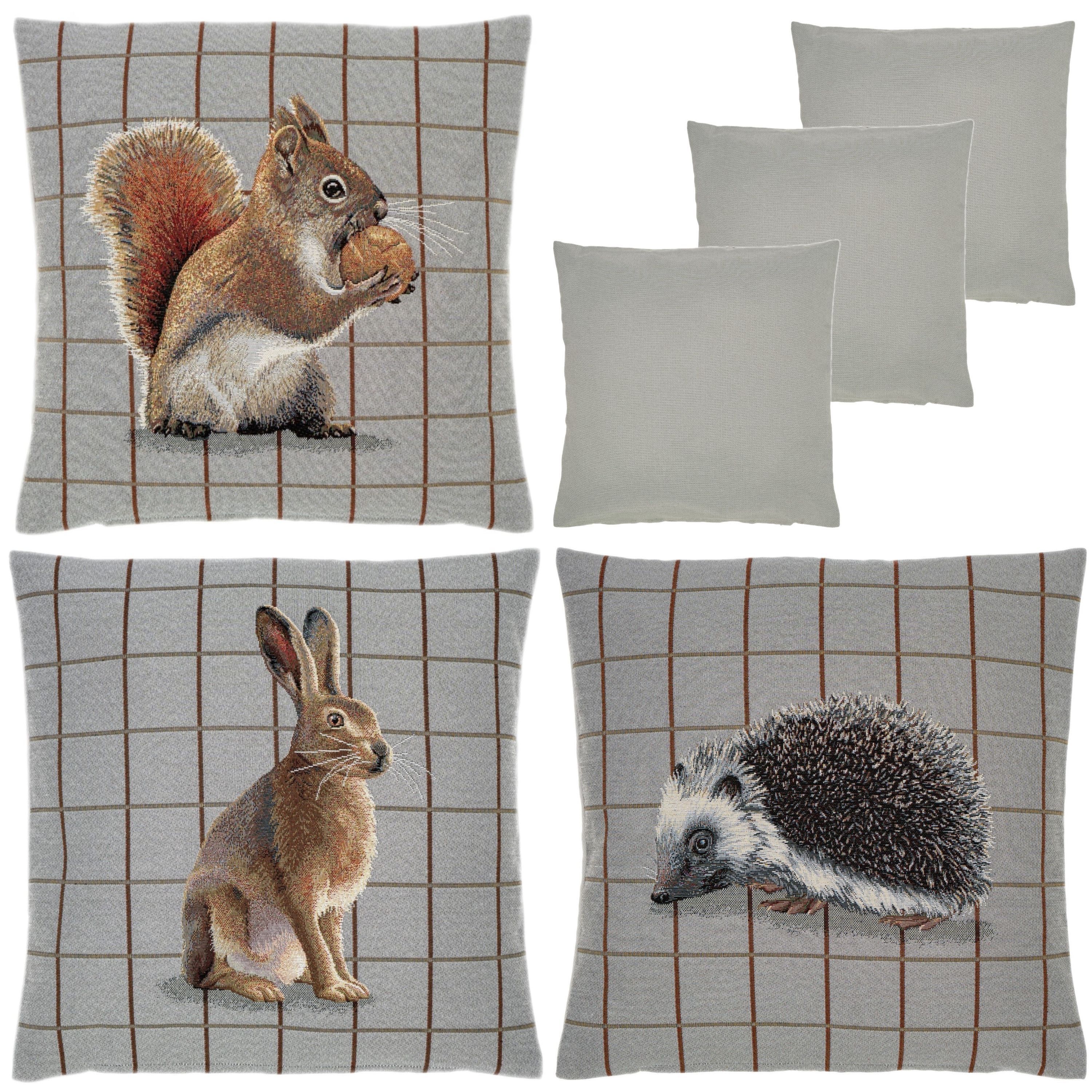 Gobelin Kissenbezug Landhaus 45x45 Tiere Gewebt Made in Germany