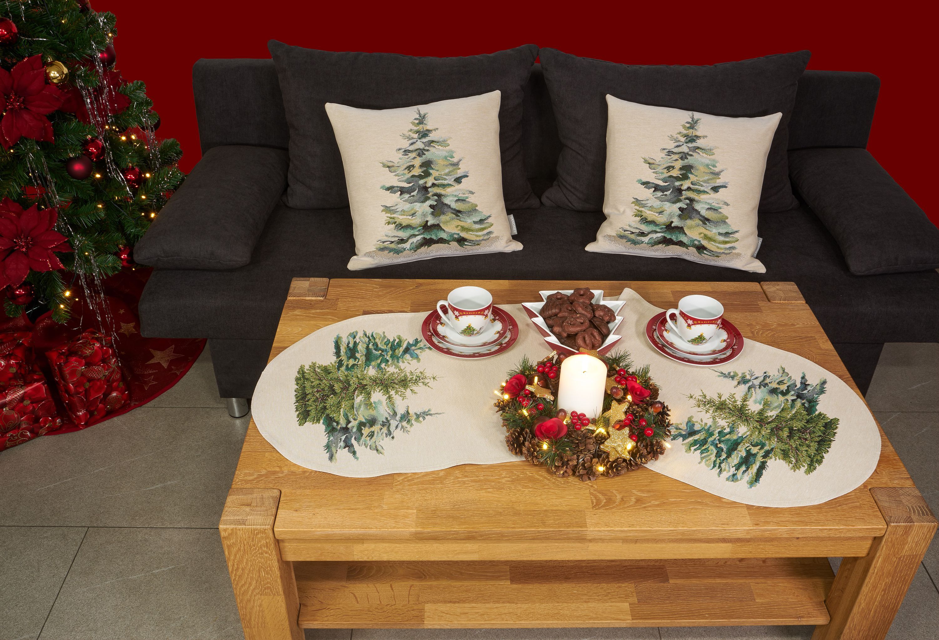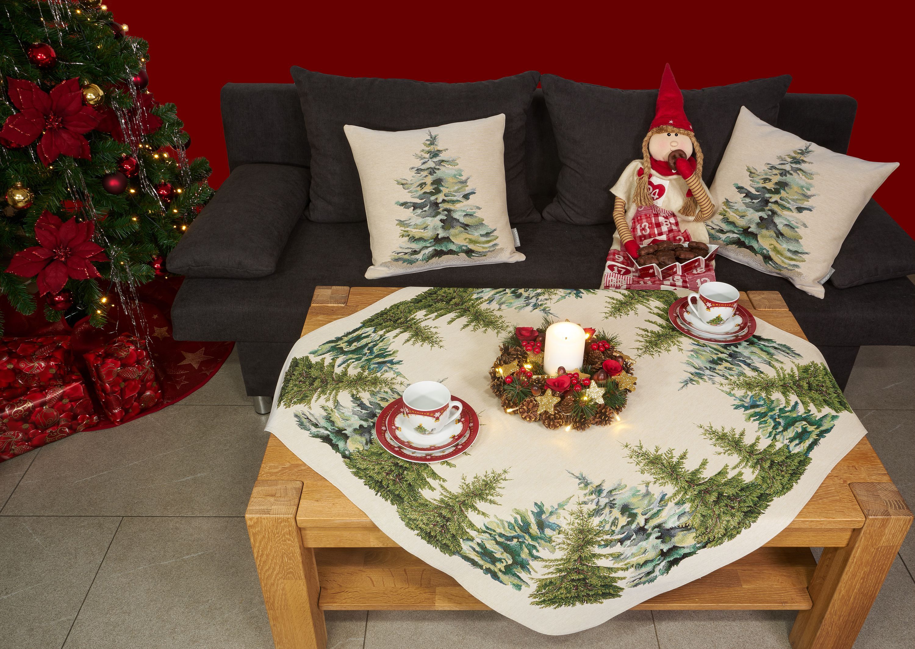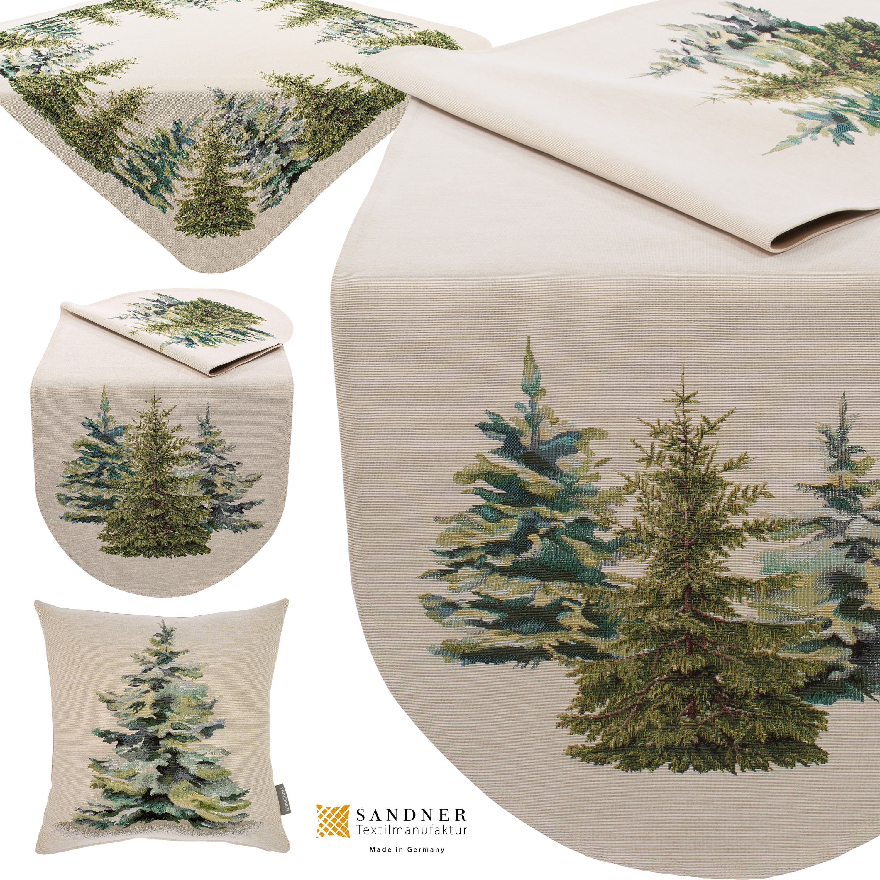 Gobelin Tischdecke Tischläufer Kissenhülle Weihnachten Wald Baum Made in Germany