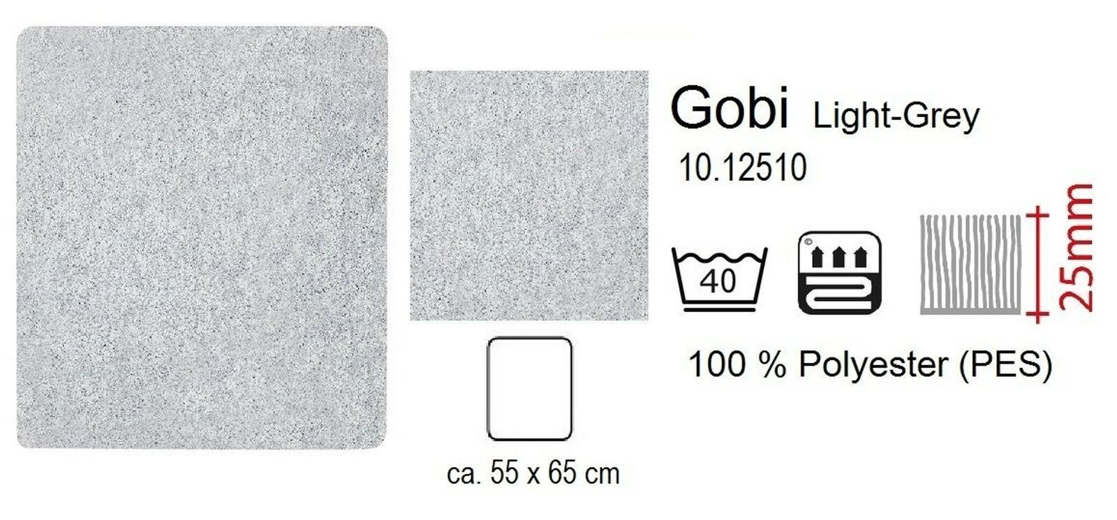 Gobi Light Grey / Hellgrau Badteppich 55x65cm. Supersoft. Florhöhe: 25mm
