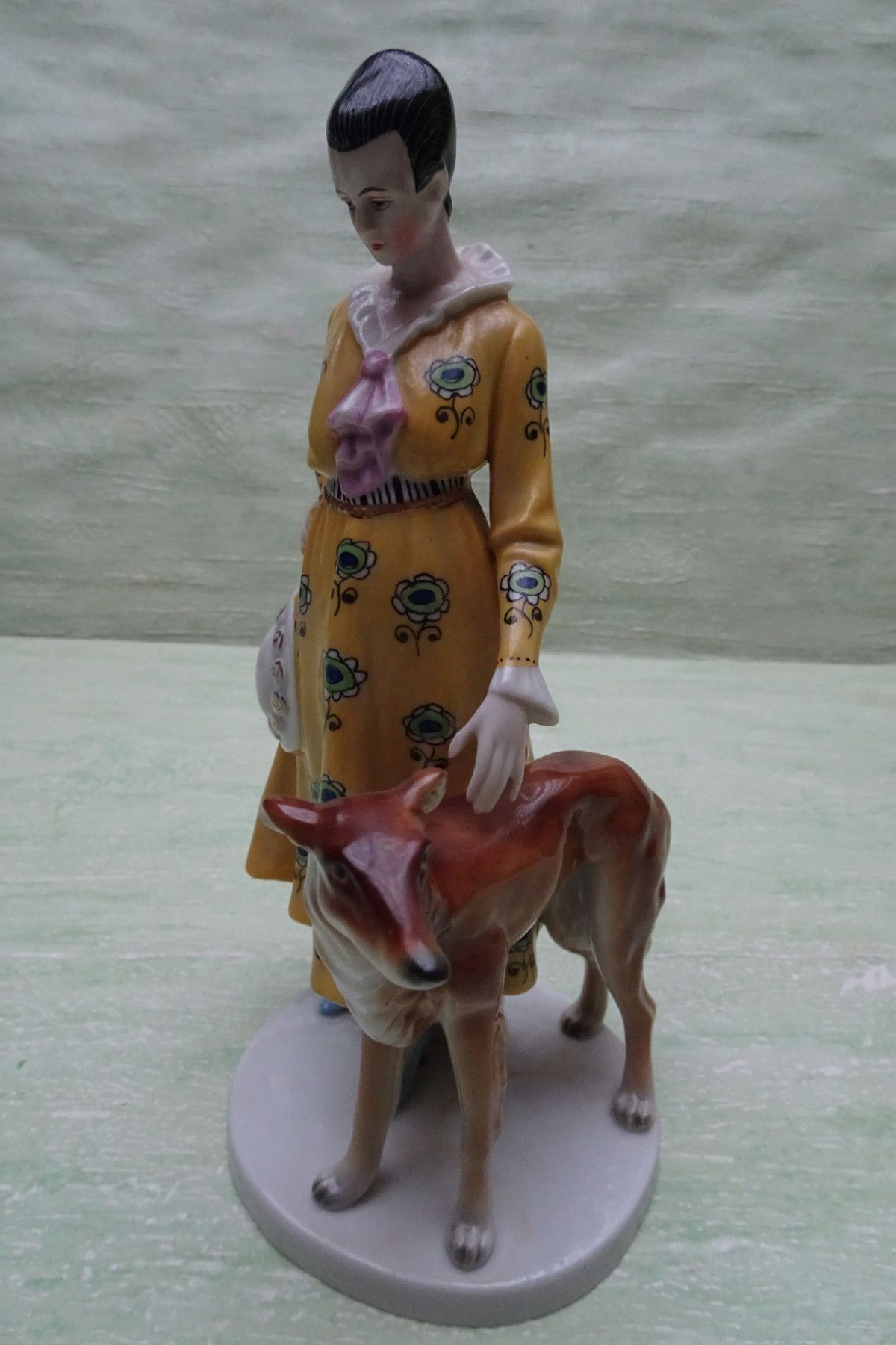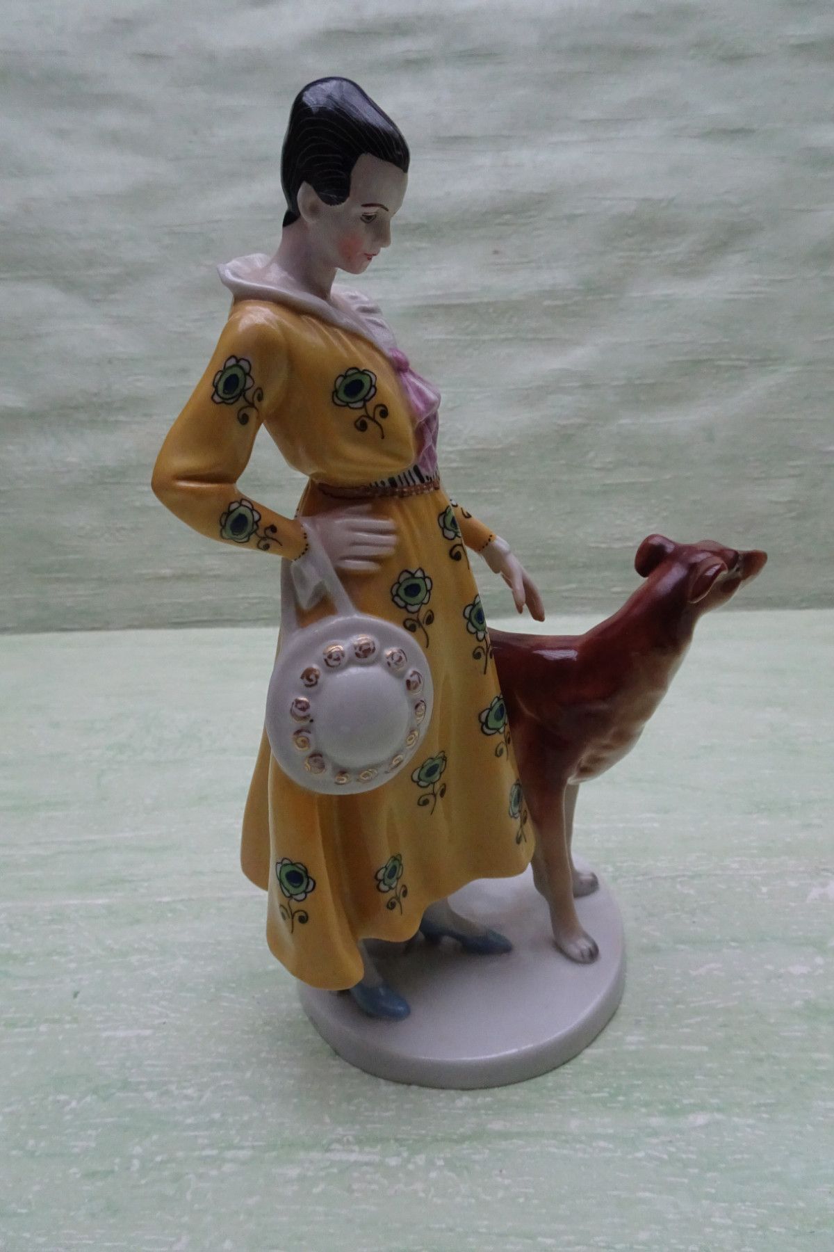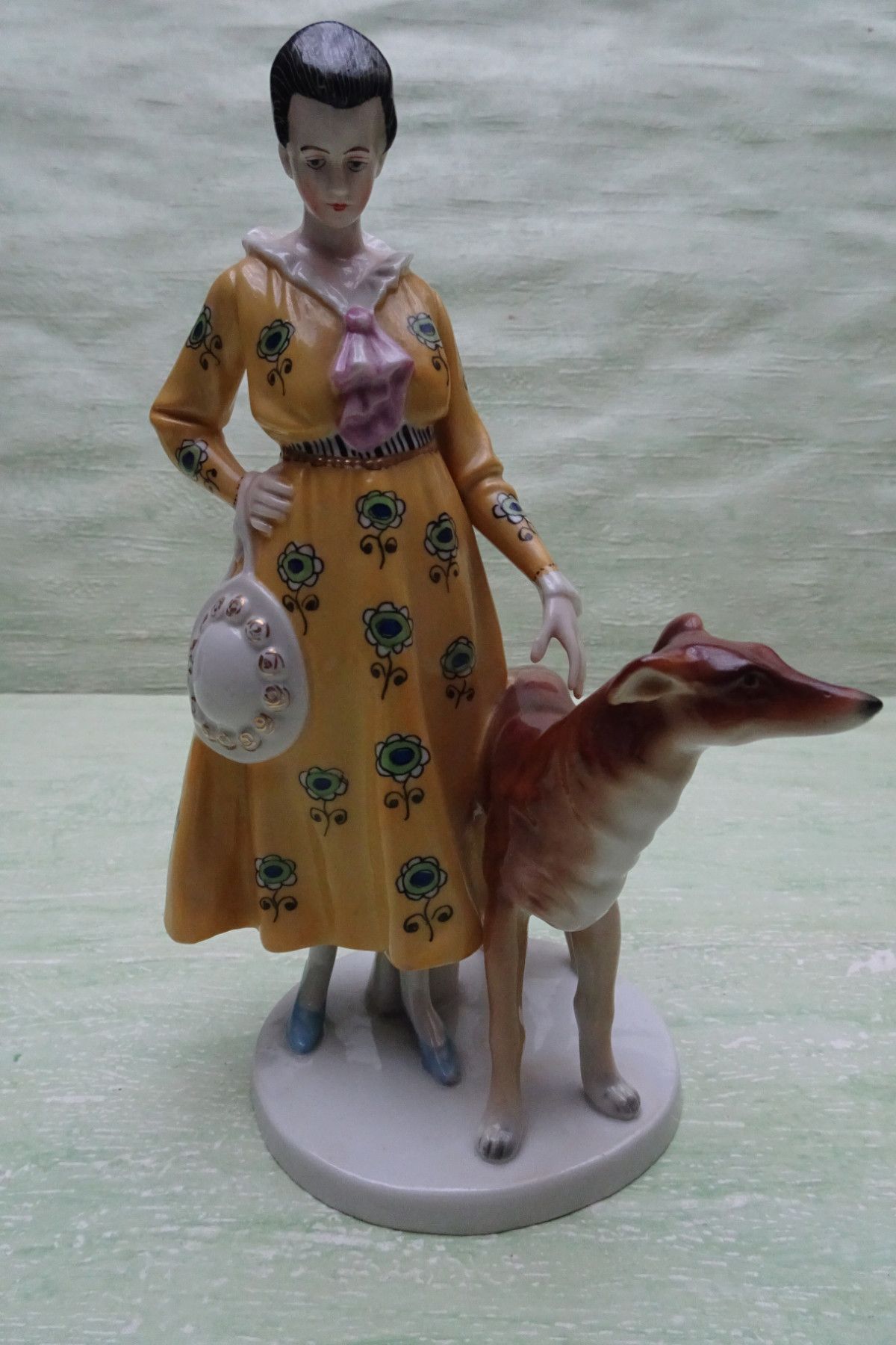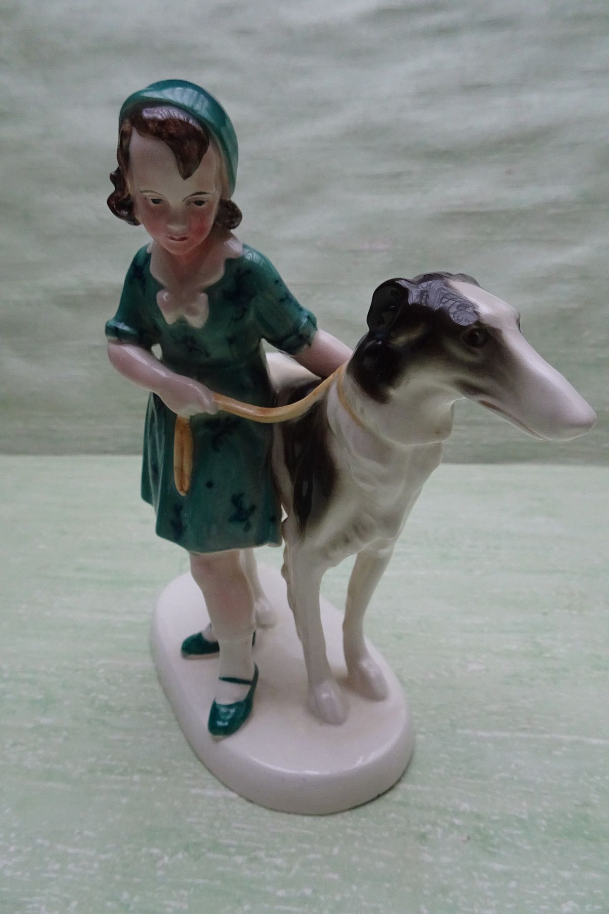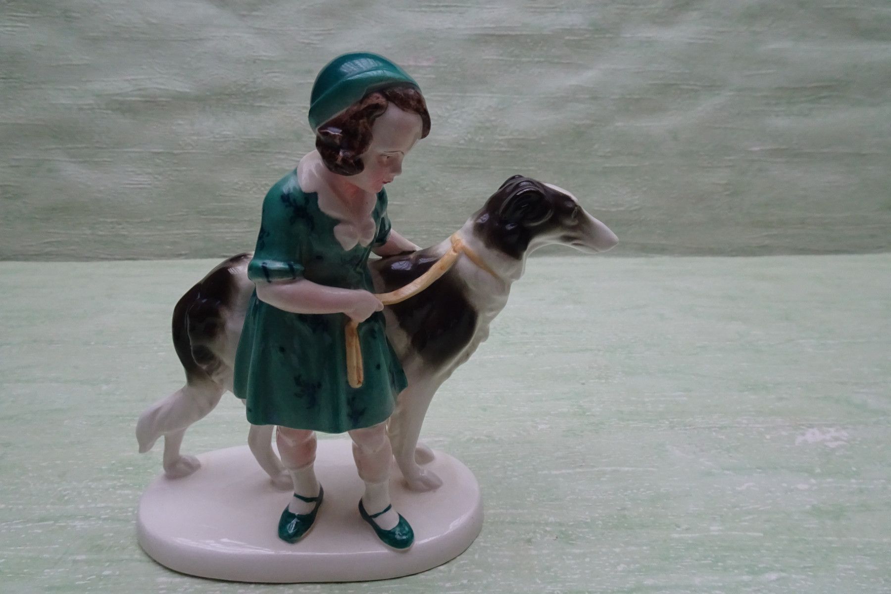 Goebel Art Deco Frau & Windhund / Hertwig Katzhütte W70 Kind mit Hund