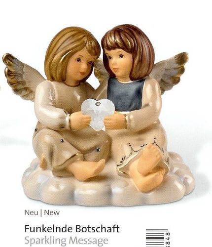 Goebel Weihnacht Funkelnde Botschaft - Engelpaar mit echtem Swarovski-Herz - von 2011. Farbe = Kristallblau. Höhe = 11 cm. Wunderschöne und ultraseltene Figur aus dem Hause Goebel. Limited Edition limitierte Auflage = 1.999 Exemplare Weltweit. Inklusive Zertifikat und limitierte Nummer auf der Boden