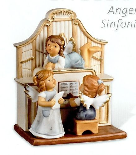 Goebel Nina und Marco Himmlische Klänge - 3 Engel musizieren an der Orgel am Klavier - aus der Kollektion Engelkapelle von 2010. Engel in der Farbgebung Blau. Höhe = 19,5 cm. Inklusive Spieluhr mit Musikwerk. Das Musikwerk spielt die Melodie: We wish you a merry Christmas . Wunderschöne und seltene