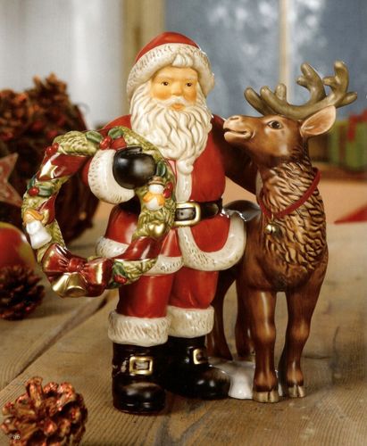 Goebel Weihnacht Treuster Freund - Santa Claus mit Rentier und Adventskranz - aus der Kollektion Morgen kommt der Weihnachtsmann von 2013. Wunderschöne und seltene Figur aus dem Hause Goebel. Höhe = 21 cm. Limited Edition limitierte Auflage = 2.999 Exemplare Weltweit. Inklusive Zertifikat und limiti