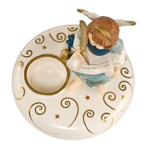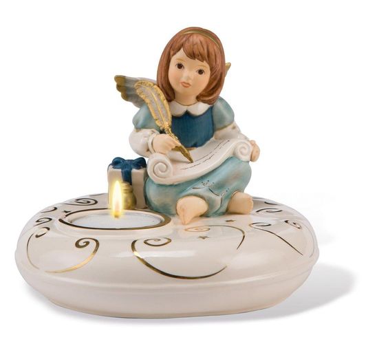 Goebel Weihnacht "Mein Wunschzettel" mit Teelicht Blau Teelichthalter Engel Feder NEU