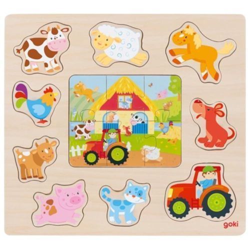 goki Einlegepuzzle Bauernhoftiere 15tlg. LernpuzzleHolzpuzzle Holzspielzeug 57371 NEU