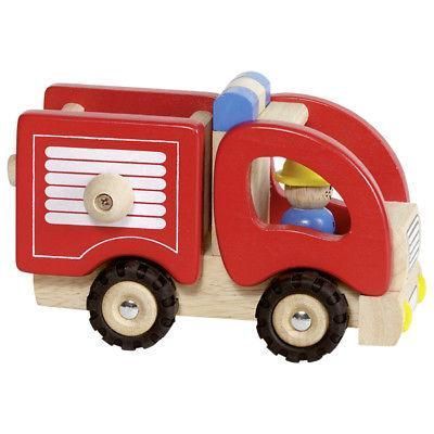 goki Feuerwehrauto aus Holz mit Fahrer Feuerwehr rot gummierte Räder LKW Neu