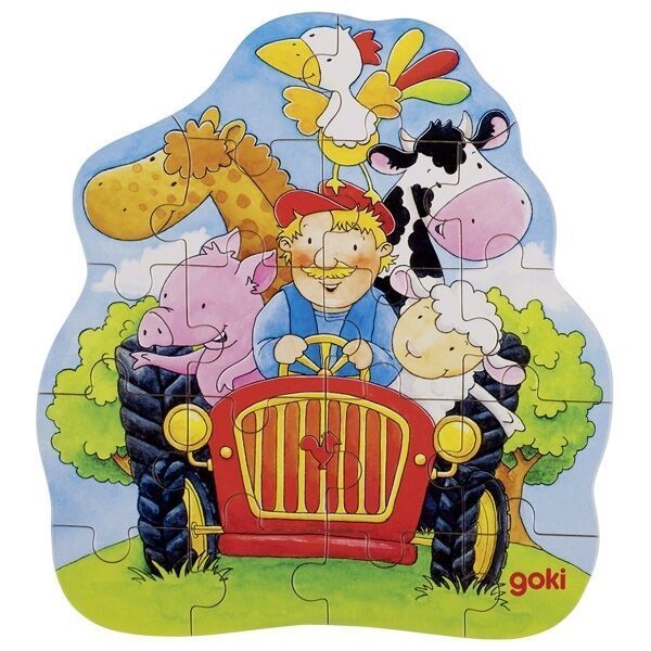 goki Kontur- Puzzle Traktor Bauernhof 18tlg. Holzpuzzle Holzspielzeug 57518 NEU